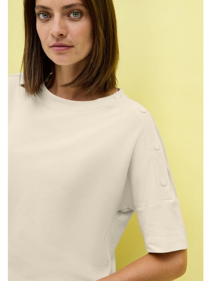 Стильная футболка с пуговицами Наша темно-красная футболка с пуговицами станет идеальным компаньоном для любого случая. Элегантная пуговица на плече добавит очаровательный акцент вашему образу и обязательно привлечет внимание. Высококачественный материал для максимального комфорта Эта футболка из высококачественной смеси 48% хлопка, 48% модала и 4% эластана обеспечивает непревзойденный комфорт. Мягкий плюшевый материал нежно ласкает вашу кожу, обеспечивая комфорт в течение всего дня. Универсальная вещь для вашего гардероба Эта футболка с классическим круглым вырезом и спущенными плечами - универсальная вещь, которую можно легко сочетать с различными предметами одежды. Будь то повседневный или нарядный образ, эта футболка всегда сидит идеально. Особенности продукта: женская футболка, круглый вырез, спущенные плечи, пуговицы на одном плече, мягкое ощущение, материал: 48% хлопок, 48% модал, 4% эластан. Применение: Эта футболка идеально подходит для повседневной носки, расслабленных выходных или как часть модного наряда для особых случаев. Сочетайте ее с джинсами, юбками или шикарной курткой - возможности безграничны. Преимущества с первого взгляда: элегантная пуговица для особого образа, высококачественный мягкий эластичный материал для максимального комфорта, универсальный дизайн для разных стилей, простота ухода и долговечность. Обслуживание клиентов и безопасность: мы отвечаем за нашу продукцию. Если что-то вас не устроит, воспользуйтесь нашей политикой беспроблемного возврата в течение 30 дней с момента покупки. Наша служба поддержки клиентов будет рада ответить на любые ваши вопросы. Информация о заказе и доставке: Доставка по Германии: 4,99 евро. Возврат принимается в течение 30 дней с момента покупки. Убедитесь сами! Почувствуйте разницу и побалуйте себя этой высококачественной футболкой. Она станет идеальным дополнением к вашему гардеробу и просто ждет, когда ее наденут. - Проверенное качество Cecil - Хорошая посадка - Высокий комфорт при носке - Состав: - 48% модал - 48% хлопок - 4% эластан