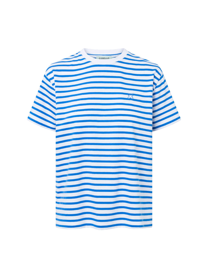 Неизменная классика: эта футболка в бретонскую полоску с изящной вышивкой логотипа на левой груди воплощает морской стиль в его лучшем проявлении. Изготовлена из высококачественного хлопка, имеет свободный крой - вневременный фаворит для элегантных повседневных образов.