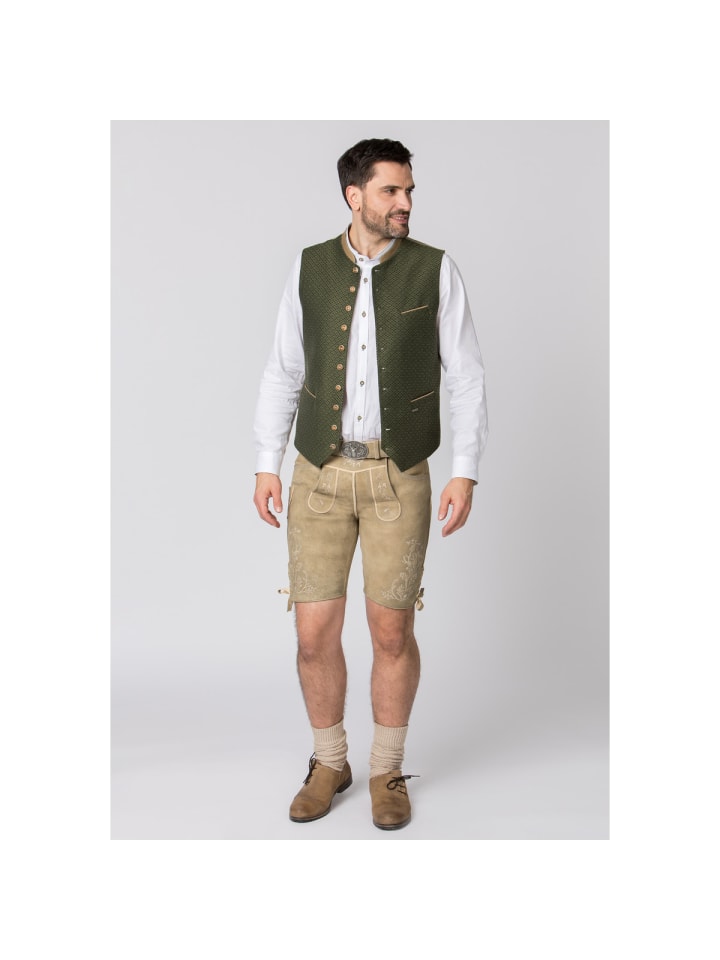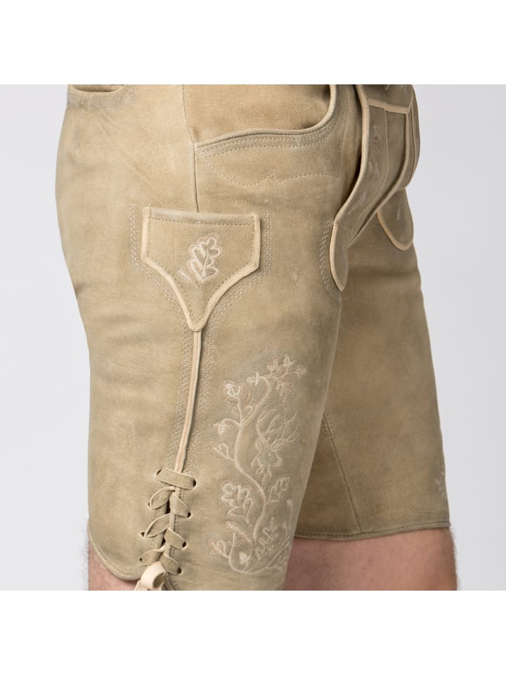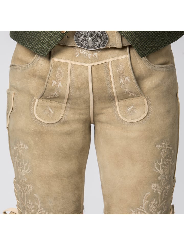 Мужские кожаные бриджи Edgar впечатляют не только красивым цветом, но и, прежде всего, вышивкой на нагруднике и штанинах. Изготовленные из высококачественной кожи, они особенно мягкие на ощупь и обеспечивают исключительный комфорт. Нагрудник застегивается на роговые пуговицы, а брючины регулируются шнуровкой. Кожаный ремень с антикварной пряжкой обеспечивает дополнительную поддержку. Помимо передних и задних карманов, бриджи также имеют небольшой вышитый карман на штанине. Эти кожаные бриджи станут настоящей изюминкой как для повседневной носки, так и для праздника.