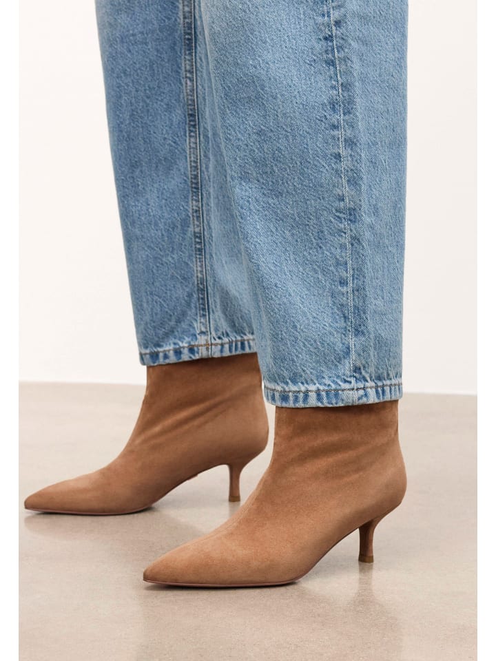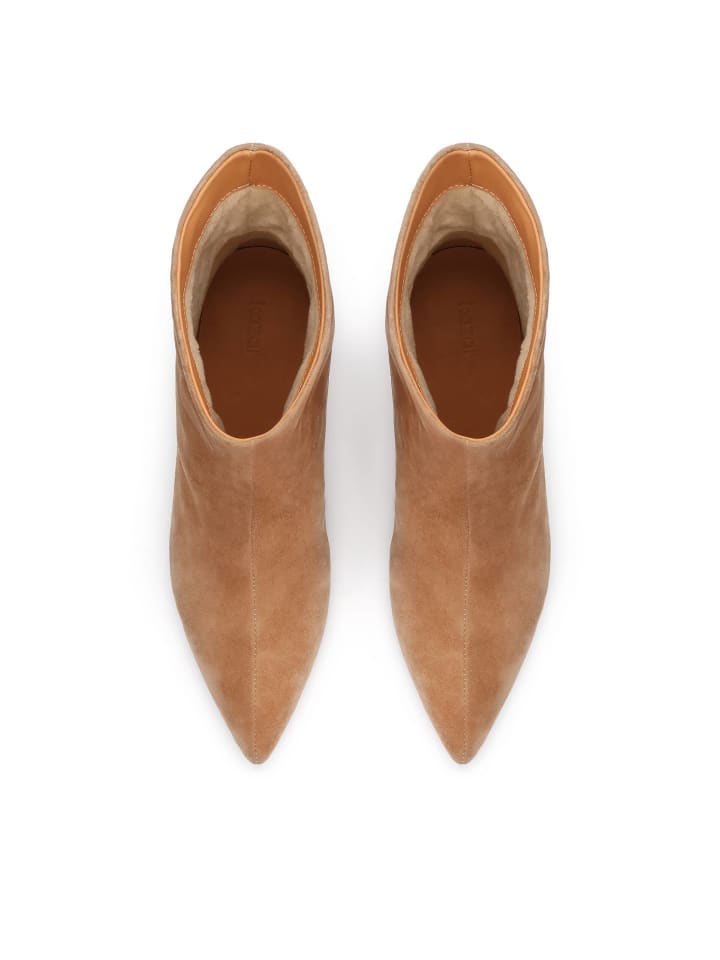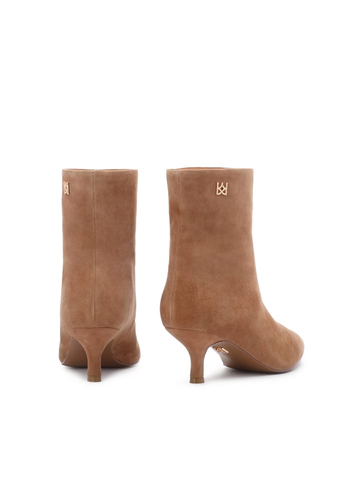 Черные ботинки из мягкой замши - стильная модель, сочетающая элегантность и повседневный комфорт. Минималистичный верх без застежек украшен тонкой золотой монограммой KAZAR, добавляющей изысканности. Острый носок визуально стройнит стопу и подчеркивает современный и слегка чувственный образ. Низкий каблук-утиный хвост обеспечивает комфортную носку и придает ботинкам немного ретростильный, но неподвластный времени стиль. Эти ботинки идеально подойдут тем, кто ценит изысканные детали и комфорт в модном ключе.