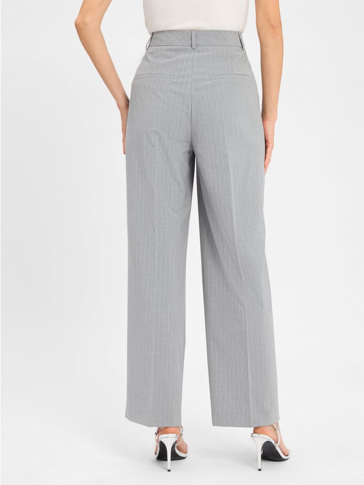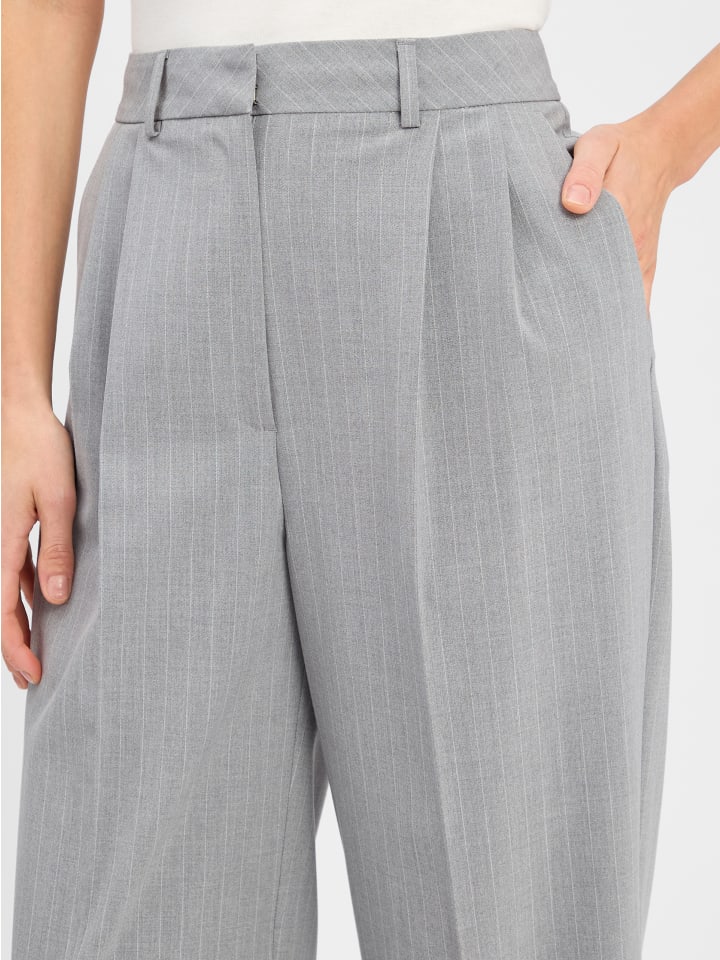 Элегантные брюки со складками от Marie Lund из эластичной вискозной смеси с боковыми карманами и прорезными карманами сзади, прямым кроем и практичной застежкой на крючок. Эти брюки являются частью комбинируемого костюма, но их можно носить и отдельно.