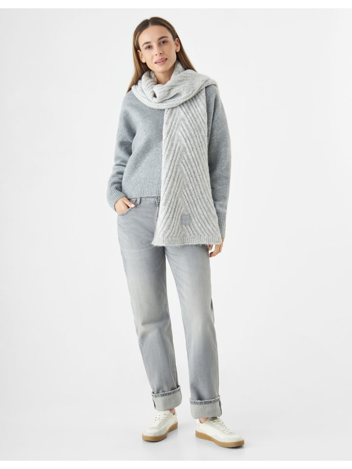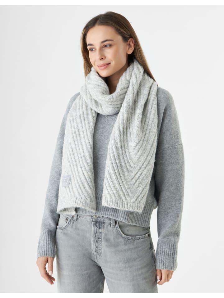 Этот вязаный шарф впечатляет своей элегантной текстурой и мягкой пряжей. Теплый материал обеспечивает комфорт в прохладные дни, а изящная нашивка с логотипом добавляет стильный штрих к простому дизайну. Элегантный спутник на каждый день.