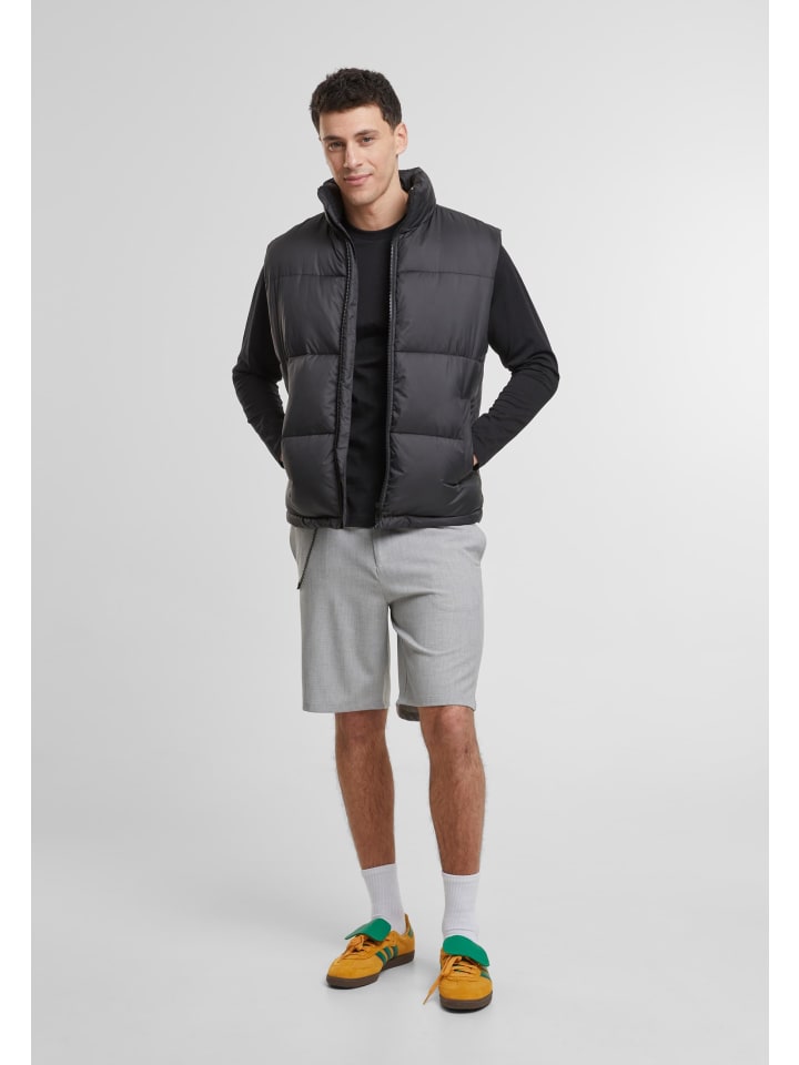 Спортивные шорты для повседневной носки, выполненные из мягкой хлопковой смеси, приятной на ощупь и классической посадки, идеально подходящей для свободного силуэта со средней посадкой. Длина до колена сочетает в себе четкие линии с практичной функциональностью: застежка на молнию и пуговицы спереди, шлевки для ремня для дополнительной регулировки и боковые карманы для повседневных вещей. Прямой подол и минималистичный крой подчеркивают сдержанную универсальность, хорошо сочетаясь с футболками или легкими топами, предлагая удобный, но изысканный вариант для различных видов отдыха. Инструкции по уходу соответствуют стандартным процедурам стирки для хлопковых смесей.