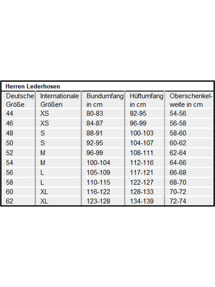 Совет: кожаные бриджи должны плотно сидеть на вас при покупке, так как они растягиваются после многократной носки. Насколько они растягиваются, зависит от того, как часто вы их носите. Как правило, кожаные брюки могут растягиваться на 2-3 см в талии и на 3-5 см в области бедер. Важно, чтобы кожаные брюки хорошо сидели по шаговому шву, так как там они не растянутся. Еще один совет: использование правильных средств по уходу за кожей продлит срок службы ваших кожаных брюк. Лучше всего заказывать их вместе с другими. Образ идеально дополнит подходящая традиционная рубашка, чаривари (традиционное баварское ожерелье с амулетами), гольфы до колена и туфли Haferl (традиционная баварская обувь). Для более современного образа попробуйте традиционную футболку и традиционные кроссовки! Инструкция по уходу: Средства по уходу за кожей. Материал: 100% кожа.