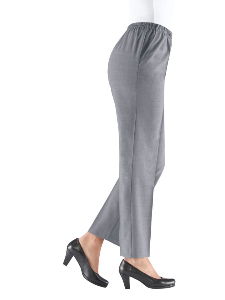Дорожные брюки с эластичным поясом и двумя боковыми карманами. Внутренний карман на поясе и дополнительный карман внутри правого внутреннего кармана. Имитация молнии с двумя декоративными пуговицами спереди. Изготовлены из ткани би-стрейч.