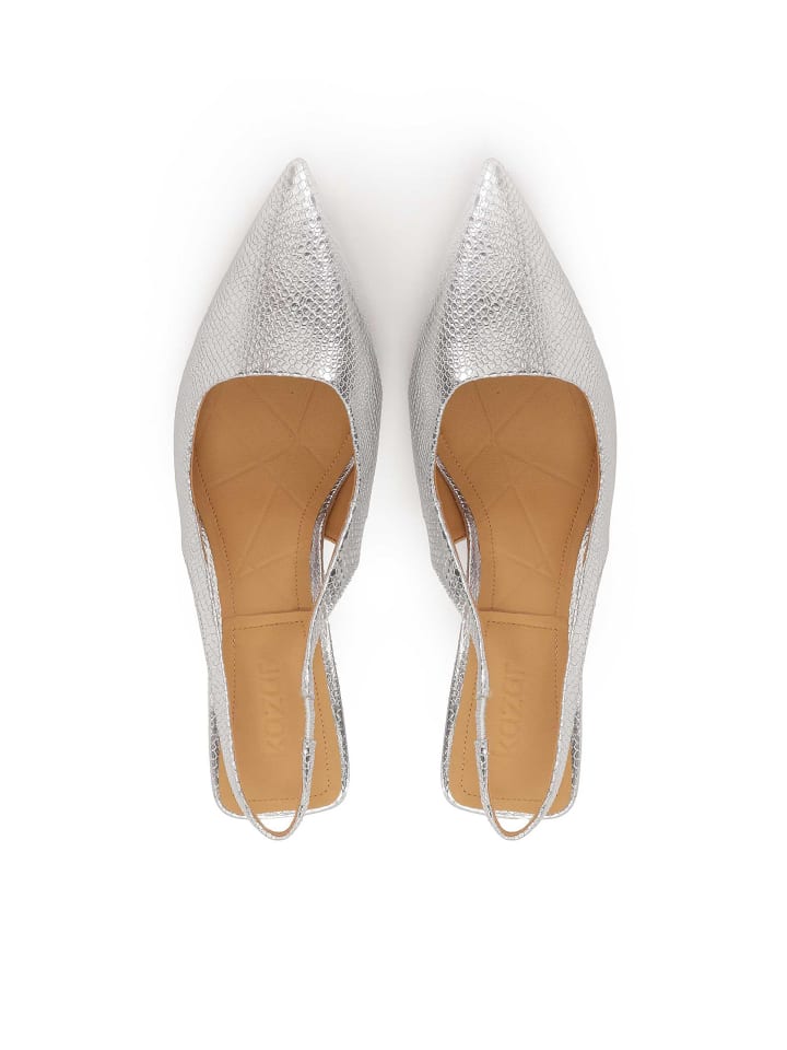 Эти туфли-лодочки из тисненой кожи с открытой пяткой - роскошный и выразительный выбор обуви, элегантно сочетающий в себе серебристый цвет. Открытая пятка обеспечивает легкость и комфорт, добавляя чувственности. Квадратный задник придает им современный вид и смелое модное решение. Эти туфли с узором и серебряным тиснением идеально подойдут для вечерних выходов, особых случаев или даже для создания элегантного повседневного образа, добавив гламура и роскоши.