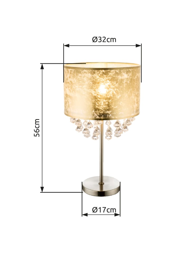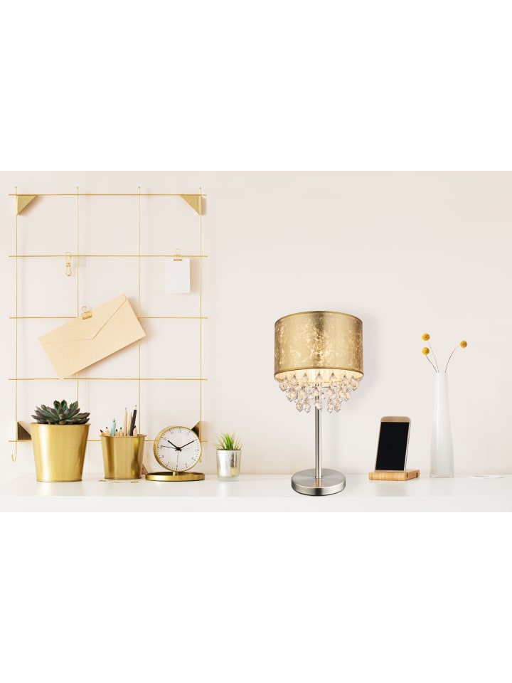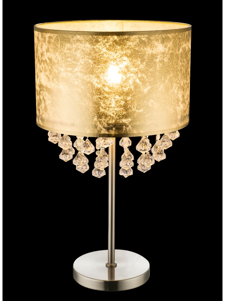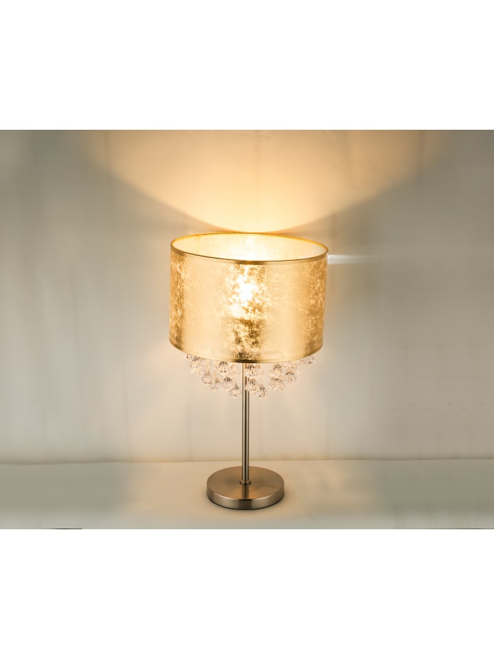 Настольная лампа, металл, матовое никелевое покрытие, ткань с золотым листом, прозрачные акриловые кристаллы, клавишный выключатель на проводе, ø: 320 мм, H: 560 мм, длина провода 1500 мм, без 1 цоколя E27 60 Вт 230 В