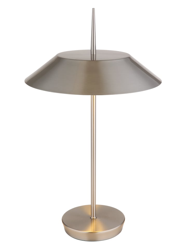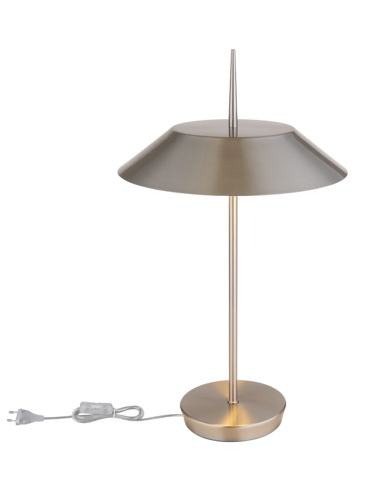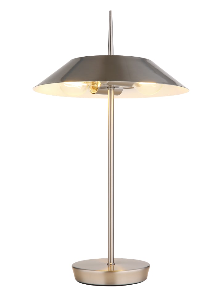 Настольная лампа, металл, матовое никелевое покрытие, черный текстильный провод, клавишный выключатель на проводе, ø: 300 мм, H: 520 мм, длина провода 1500 мм, без 2 ламп E27 40 Вт 230 В