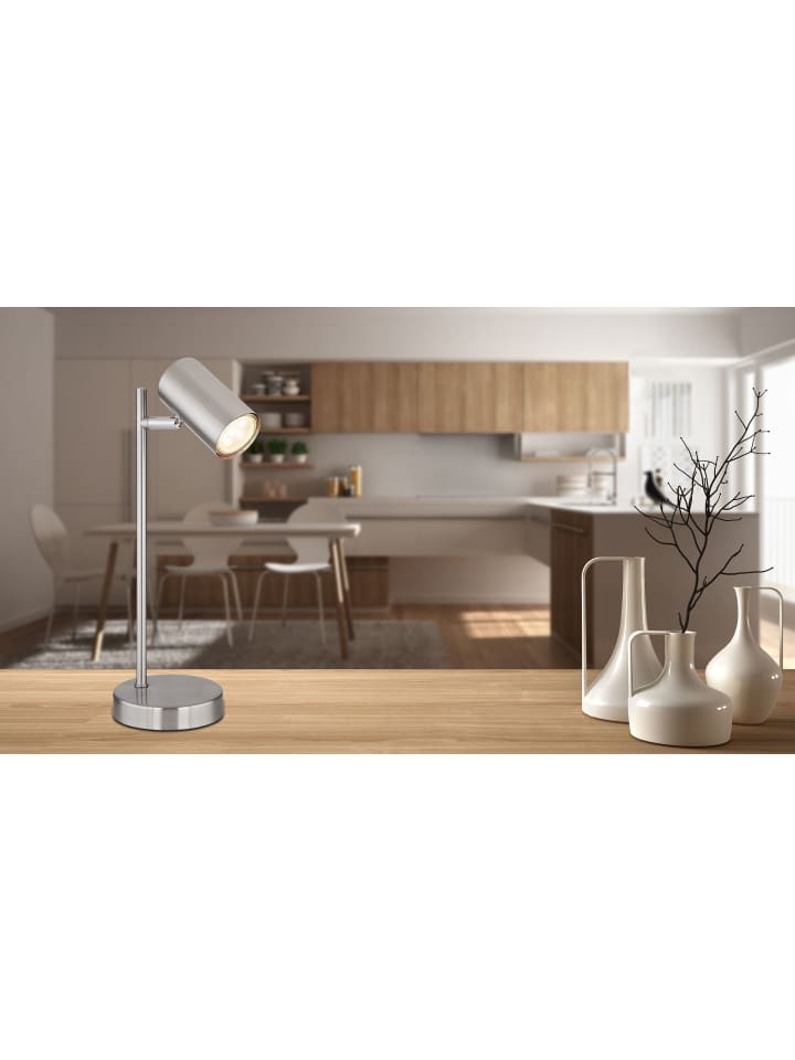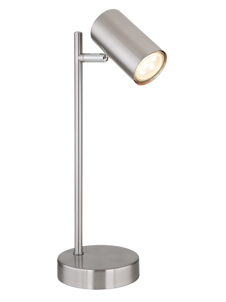 Настольная лампа, металл, матовый никель, хромированная, металл, матовый никель, ø: 120 мм, H: 350 мм, длина кабеля 1500 мм, без 1 светодиода GU10 5 Вт 230 В