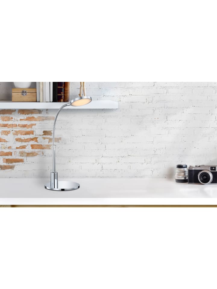 Настольная лампа, хромированный алюминий, опаловый акрил, клавишный выключатель на кабеле, гибкая, Д x Ш x В: 250 x 250 x 420 мм, длина кабеля 1700 мм, в комплекте светодиод 6 Вт 230 В, источник света 550 лм, световой поток 450 лм, цветовая температура 3000 К