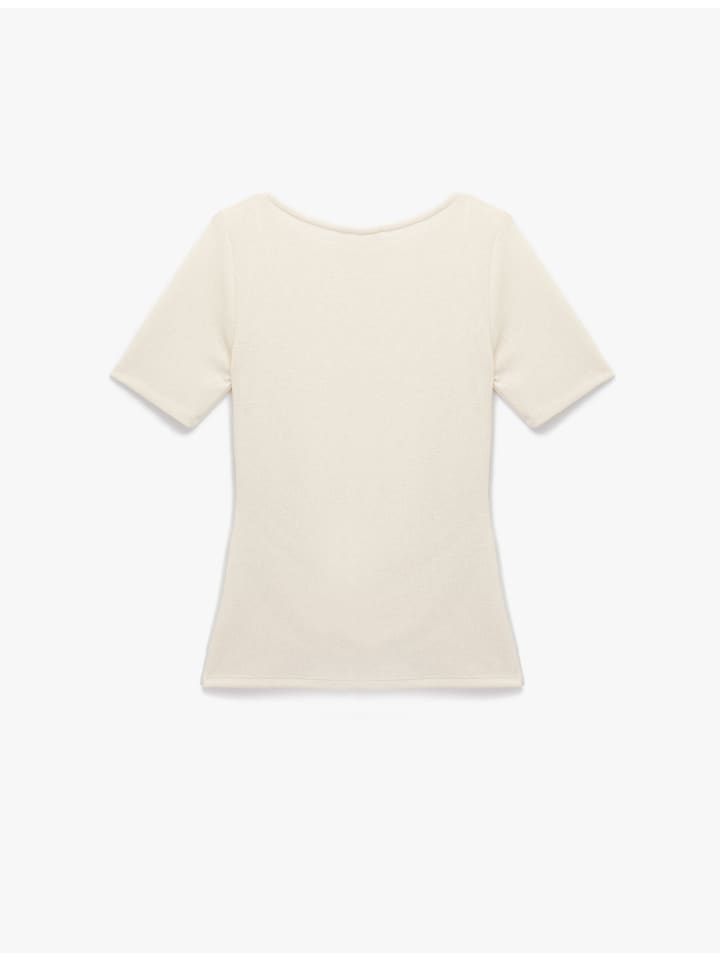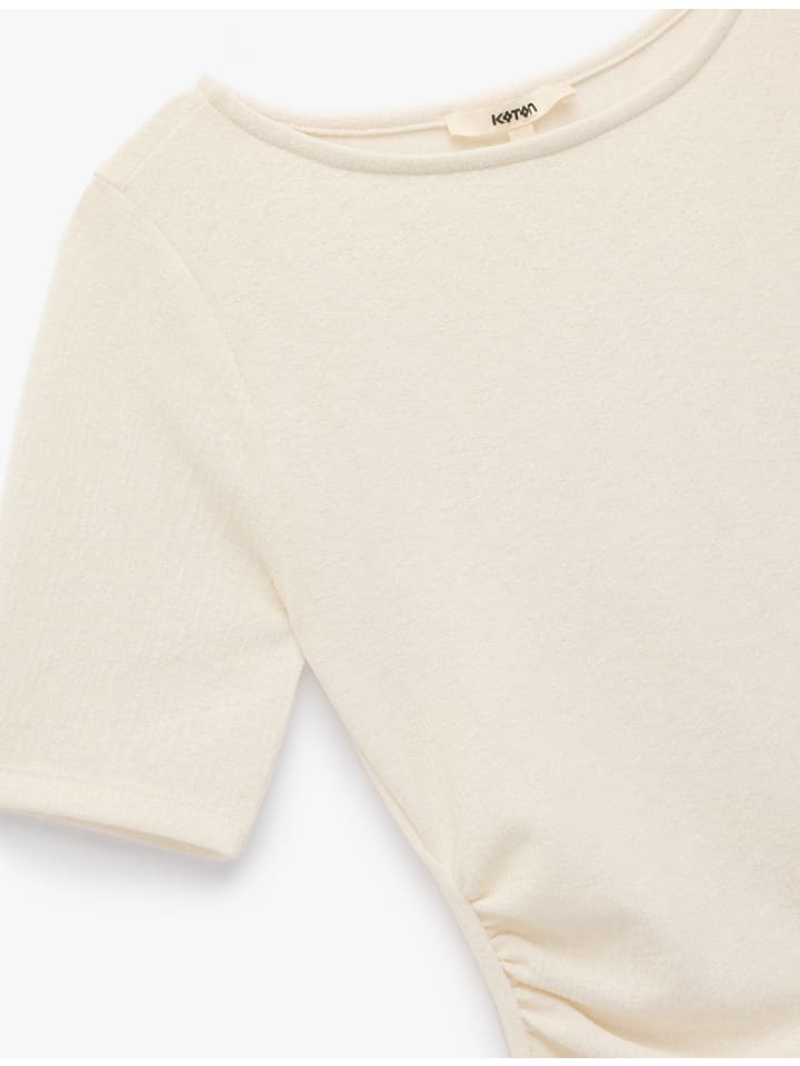 Эта футболка элегантно смотрится благодаря драпированным деталям и облегающему крою, подчеркивающему фигуру. Круглый вырез горловины и короткие рукава делают ее универсальной вещью на каждый день. Эластичная ткань обеспечивает удобную посадку, а дизайн можно сочетать как с брюками, так и с юбками.