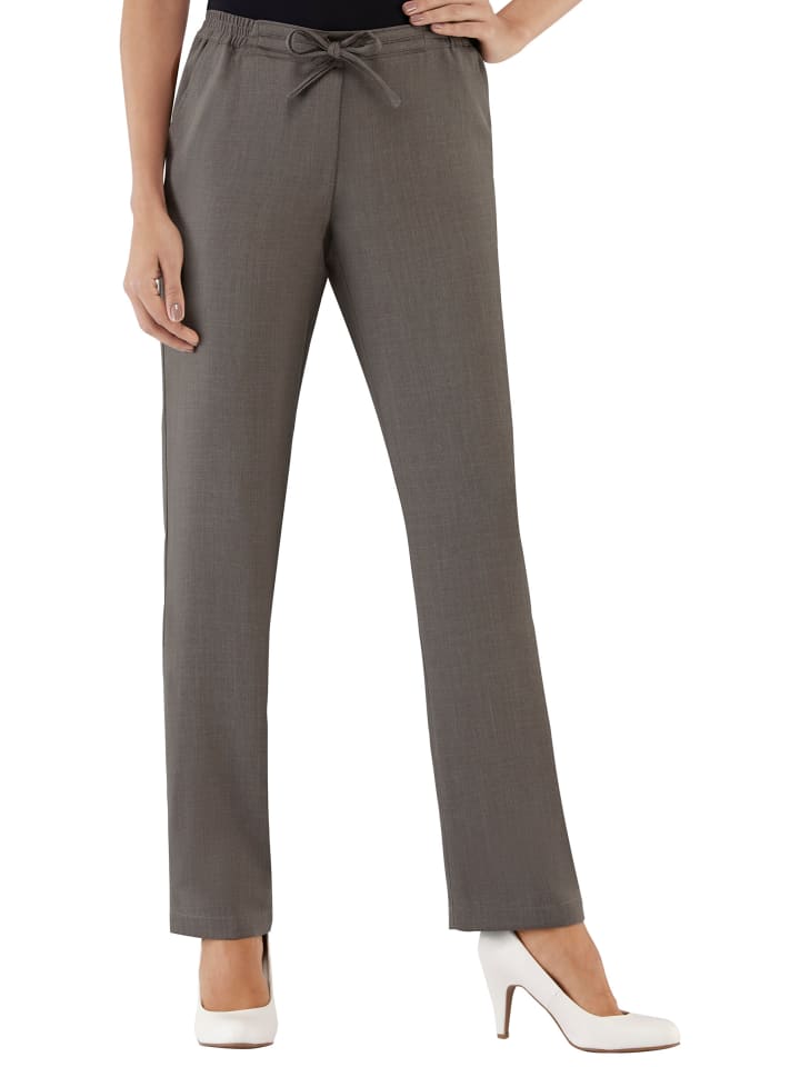 Повседневные брюки из легкой ткани, имитирующей лен. Два передних кармана и декоративные швы. Эластичный пояс с гладкой подкладкой и двумя шнурками спереди. Длина брючины примерно 42 см.