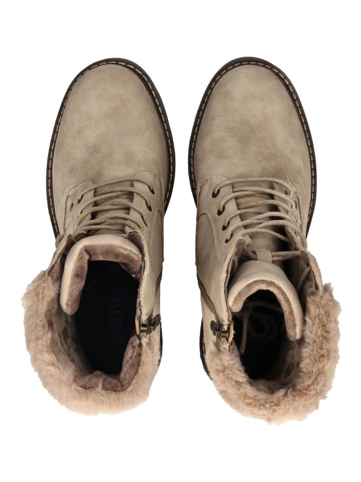 Эти ботильоны Mustang впечатляют своим прочным и одновременно женственным видом. Верхний материал с эффектными швами и тисненым логотипом создает стильный вид, а шнуровка и боковая молния позволяют легко надевать и снимать. Внутри теплая подкладка согреет даже в холодные дни. Профилированная подошва предотвращает скольжение, а блочный каблук добавляет стильный штрих. Универсальная обувь для повседневной носки и отдыха, идеально сочетающая комфорт и стиль.
