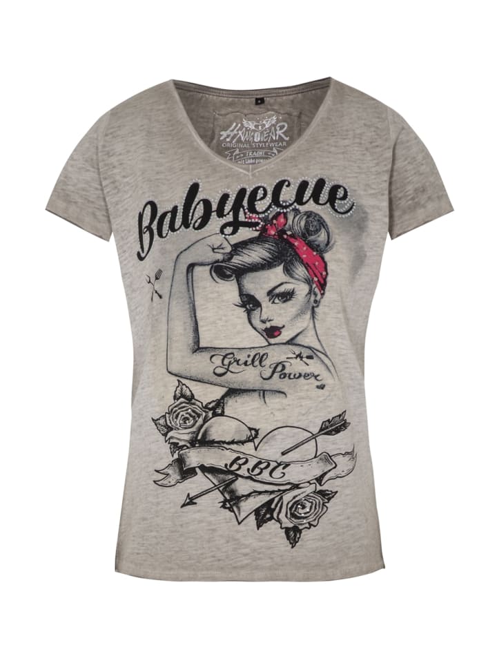 Идеальный костюм для барбекю. Женщинам место не у плиты, а у гриля! В классной футболке BABYECUE от Hangowear, название которой говорит само за себя, сосиски для гриля получаются практически идеальными. Этот стильный костюм для гриля в серо-бежевом цвете доступен в нашем интернет-магазине в различных размерах.