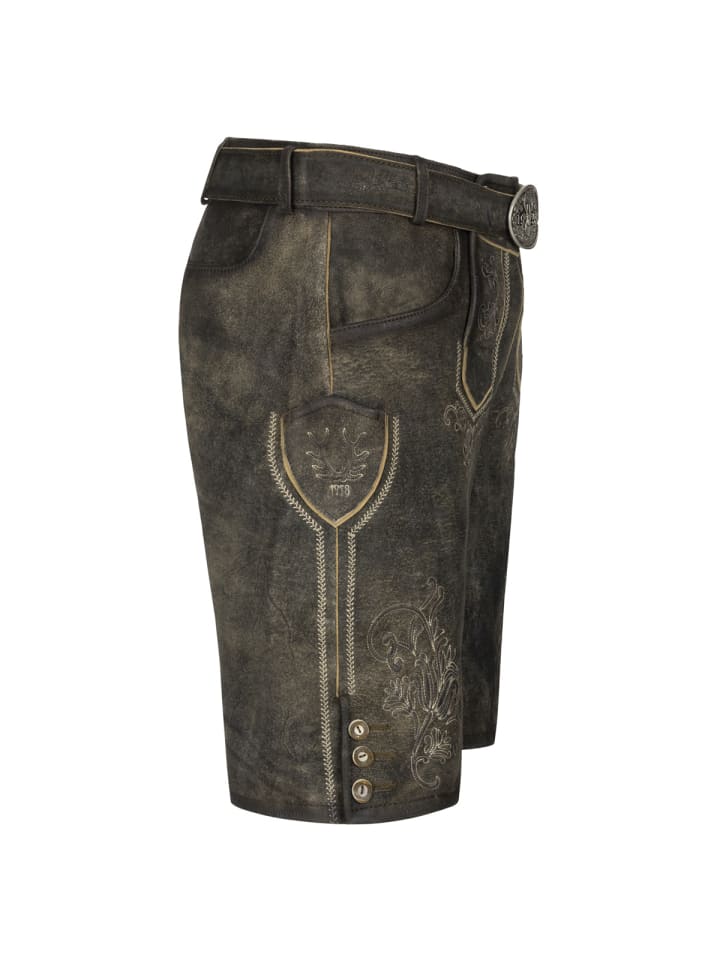 Кожаные брюки Arijus от Krüger - абсолютный маст-хэв на Октоберфесте. Мягкий и эластичный верх из козьей кожи с эффектной вышивкой на бедрах и нагруднике делает их настоящей приманкой для глаз. Еще одна изюминка - пряжка ремня с годом основания и изображением оленя. Ластовица сзади позволяет легко отрегулировать брюки по размеру талии. Стильные роговые пуговицы на нагруднике и штанинах идеально дополняют эти элегантные кожаные брюки. Сзади также есть карман для кошелька. На правой штанине вы найдете небольшой карман для мелочей, например, мелочи. Эти кожаные брюки сочетают в себе традиционное мастерство с практичными деталями и станут настоящей приманкой для глаз на Октоберфесте. - Мягкая и эластичная кожа - Брюки с ремнем - Изысканная вышивка - Ластовица на поясе для легкой регулировки по размеру талии - Задний карман для кошелька. Материал: 100% кожа