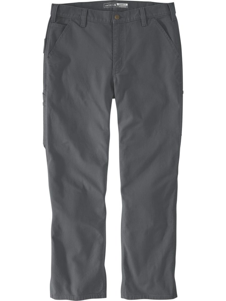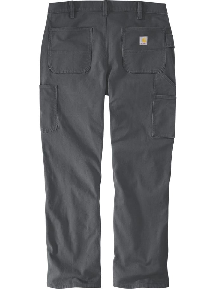 Широкий крой, прямой крой · 11,4 унций/ярд² - 387 г/м² · 99% хлопок/1% эластан · Мягкая ткань с эластичностью · Прочная ткань Flex - облегчает движения · Длинные брюки · Два усиленных передних кармана с листочкой · Карман для монет в правом переднем кармане · Несколько карманов для инструментов и вспомогательных вещей · Вспомогательная лента на правой штанине · Усиленные задние карманы для более тяжелых предметов · Более прочные, пришитые шлевки для ремня · Ярлык Carhartt пришит к карману