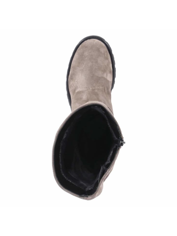 Ботинки для холодных дней, сочетающие в себе функциональность и эстетику: Kaerlek представляет модель из серой замши с бархатистой поверхностью, теплой подкладкой из овчины и кожаной стелькой для уюта и комфорта. Молния позволяет легко надевать ботинки, а небольшая эластичная вставка в верхней части голенища улучшает посадку. Высота голенища около 40 см, окружность около 38 см, ботинки создают элегантный силуэт, дополненный укрепленной пяткой. Прочная, нескользящая подошва обеспечивает надежную опору на зимних тропах, а блочный каблук высотой 4 см слегка удлиняет фигуру, не влияя на устойчивость. Закругленный носок и стандартная ширина обеспечивают комфорт с утра до вечера. Модный совет: шерстяные кюлоты, тонкий кашемировый свитер и длинное серое пальто создают современный, гармоничный зимний образ.