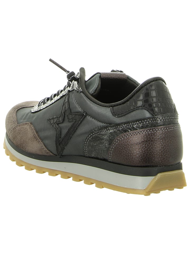 Серые низкие кроссовки Cetti - незаменимая вещь для стильных женщин. Серая кожа с блестящим верхом гарантированно привлечет внимание. Мягкая, удобная съемная стелька и прозрачная подошва обеспечивают комфортную посадку. Прогуляйтесь по городу стильно и с комфортом в этих женских низких кроссовках от Cetti!
