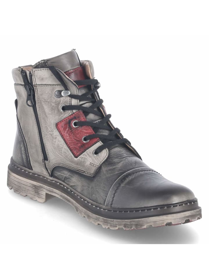 Эти зимние ботинки Krisbut обеспечат уверенный внешний вид в зимних условиях. Прочная натуральная кожа выполнена в темно-синем цвете с мраморным эффектом, а закругленный носок придает им вневременной вид. Теплая подкладка, кожаная стелька и съемная стелька повышают комфорт, а мягкий воротник и язычок позволяют легко надевать их. Практичное сочетание шнурков и молнии обеспечивает надежную посадку и быстрый доступ, в то время как блочный каблук высотой 3 см и усиленные области пятки и носка обеспечивают устойчивость. Гибкая подошва с эффектом потертости обеспечивает сцепление на мокрой поверхности, а стандартная посадка позволяет легко выбрать правильный размер. Универсальный компаньон для всего: от офиса до поездок на выходные. Модный совет: сочетайте их с темными джинсами, темно-синей технологичной паркой и толстой шапкой-бини для современного городского зимнего образа. Шарф серого меланжа обеспечивает спокойное равновесие.