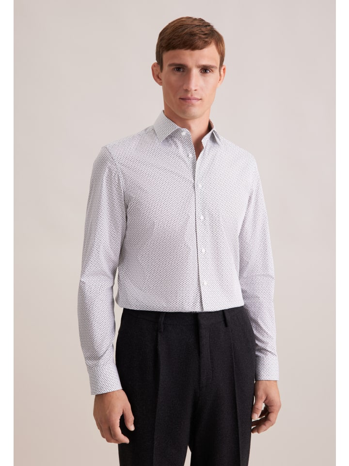 Мужская эстетика: Создайте стильный образ с помощью деловой рубашки 1/1 из коллекции «SMART ESSENTIALS» от Seidensticker. Работаете ли вы из дома, отдыхаете, на мероприятиях или в офисе - эта элегантная классика легко сочетается с другими вещами. Благодаря облегающему крою эта деловая рубашка идеально облегает фигуру. Принт в виде цепочек сделает ваш новый образ одновременно элегантным и модным. Рубашка Seidensticker сочетает в себе элегантный современный стиль с формальными и повседневными элементами. Универсальный деловой стиль идеально подчеркивается воротником Kent.