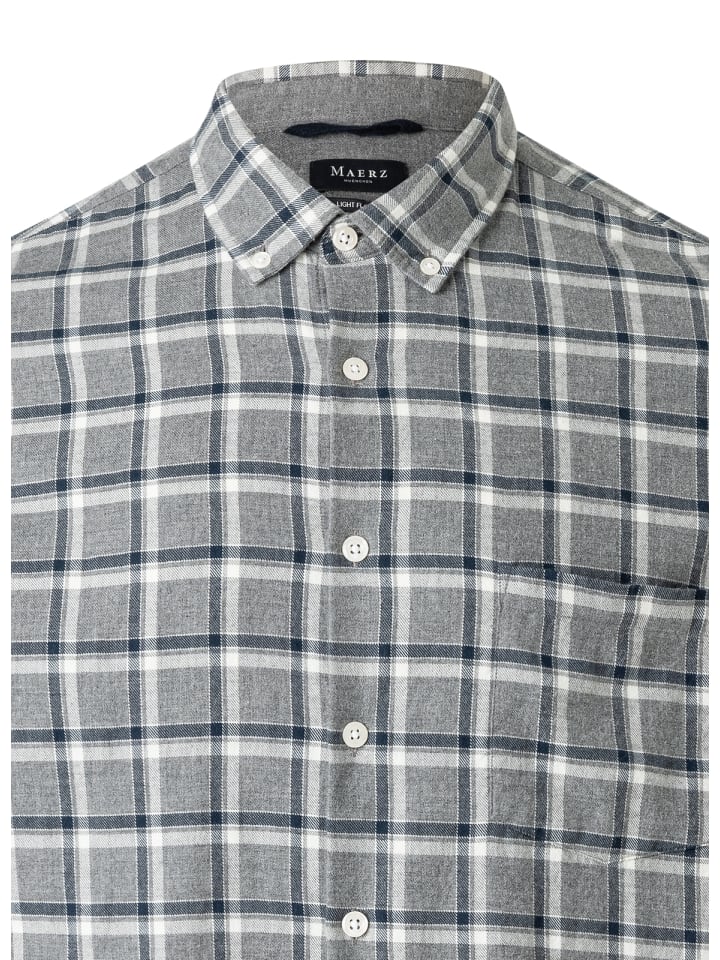 Эта фланелевая рубашка от MAERZ Muenchen с воротником на пуговицах и рукавами с манжетами делает ее классической вещью для элегантных повседневных образов.