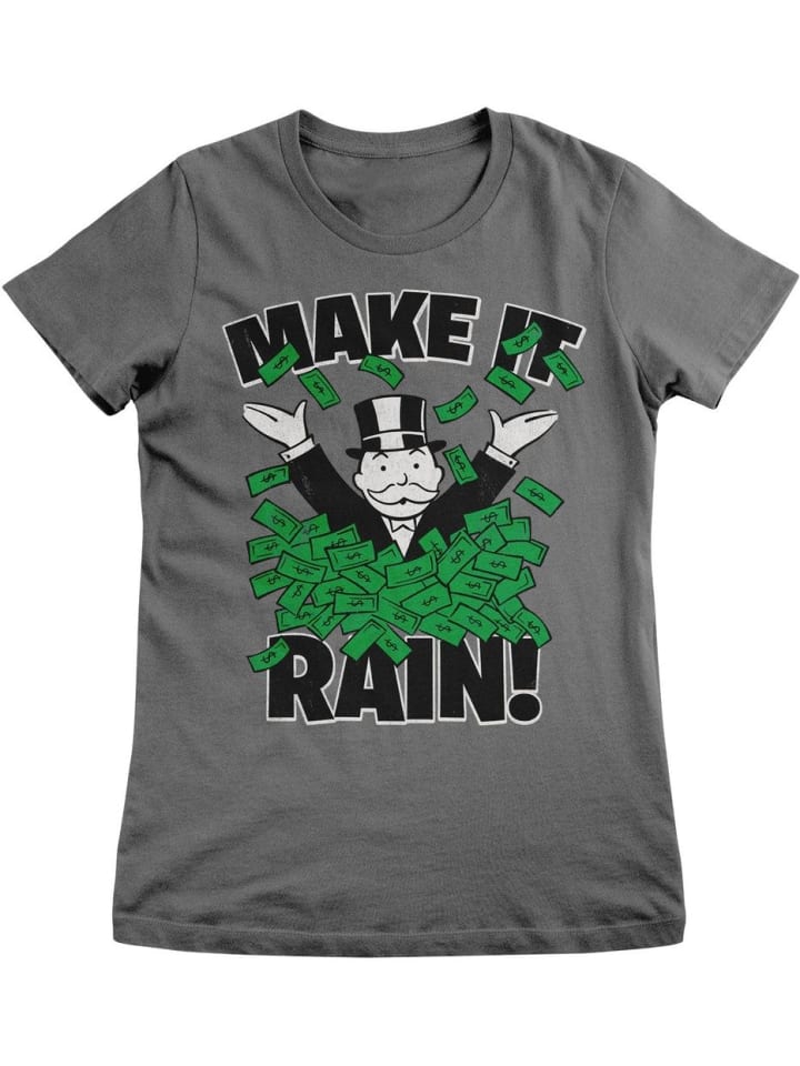 Футболка Monopoly Make It Rain Girly Tee серого цвета Monopoly