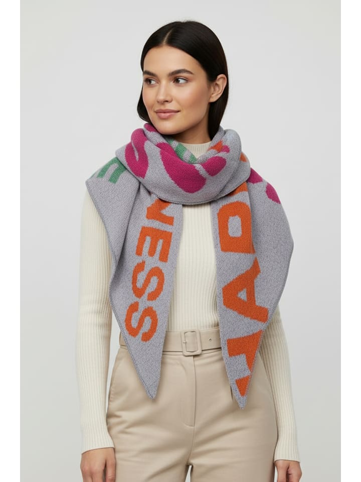 Шарф FAERA впечатляет своей современной типографикой и свежими цветовыми сочетаниями.
