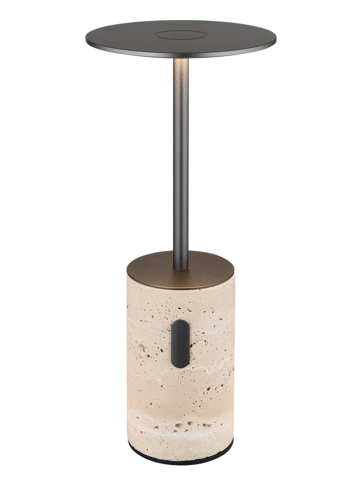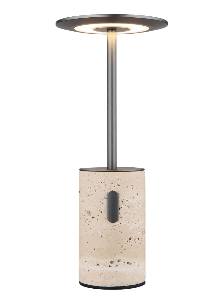 Настольная лампа Travertine stone grey, алюминий-графит, опаловый пластик, черный кабель из ПВХ, сенсорное включение/выключение, плавный сенсорный диммер, функция памяти, адаптер не входит в комплект, USB-кабель входит в комплект, USB-C - USB-C, батарея CR18650 2500 мАч 3,7 В входит в комплект, время зарядки около 3 часов, время работы свечения около 5 часов, светится во время зарядки, ø: 120 мм, H: 276 мм, длина кабеля 1000 мм, в комплекте светодиод 3 Вт 230 В, источник 258 лм, световой поток 195 лм, 3000 К
