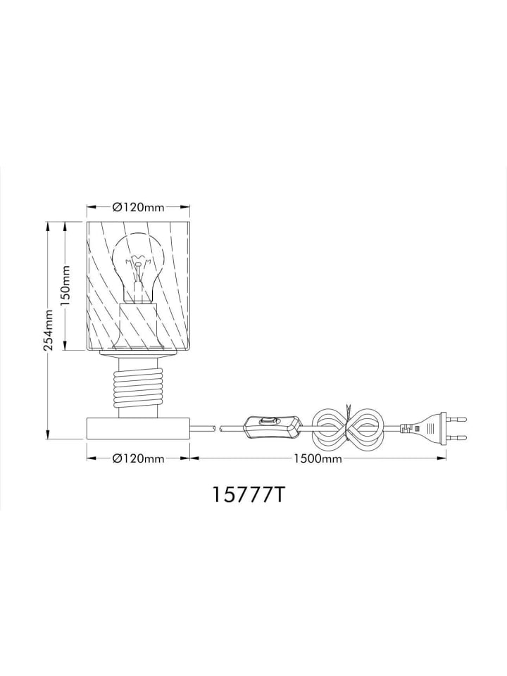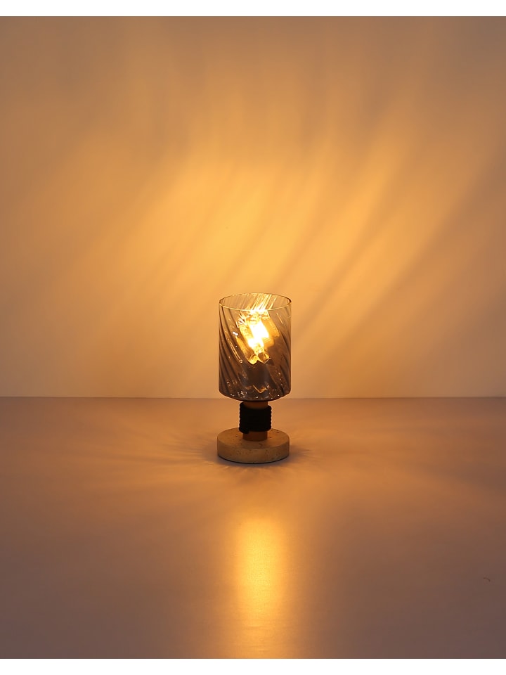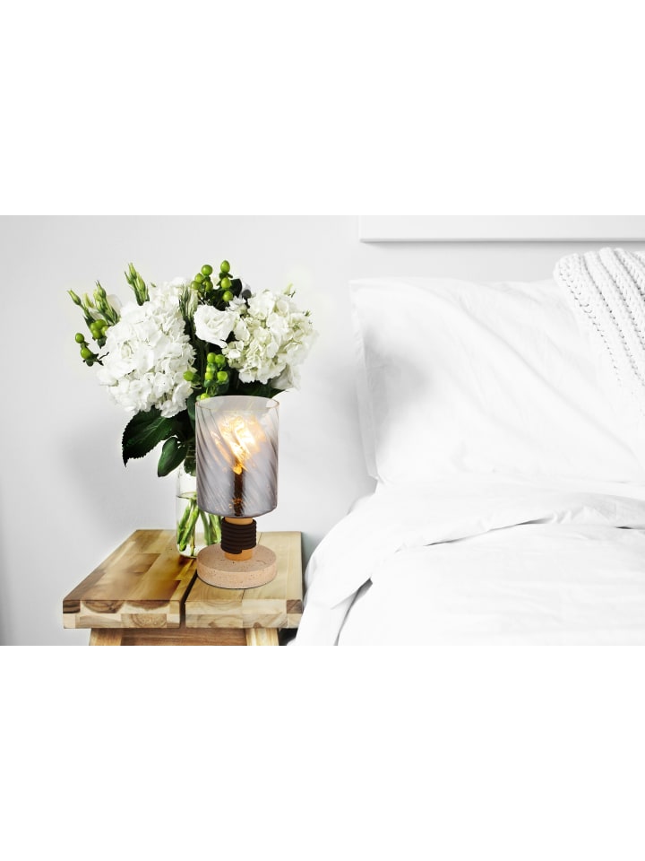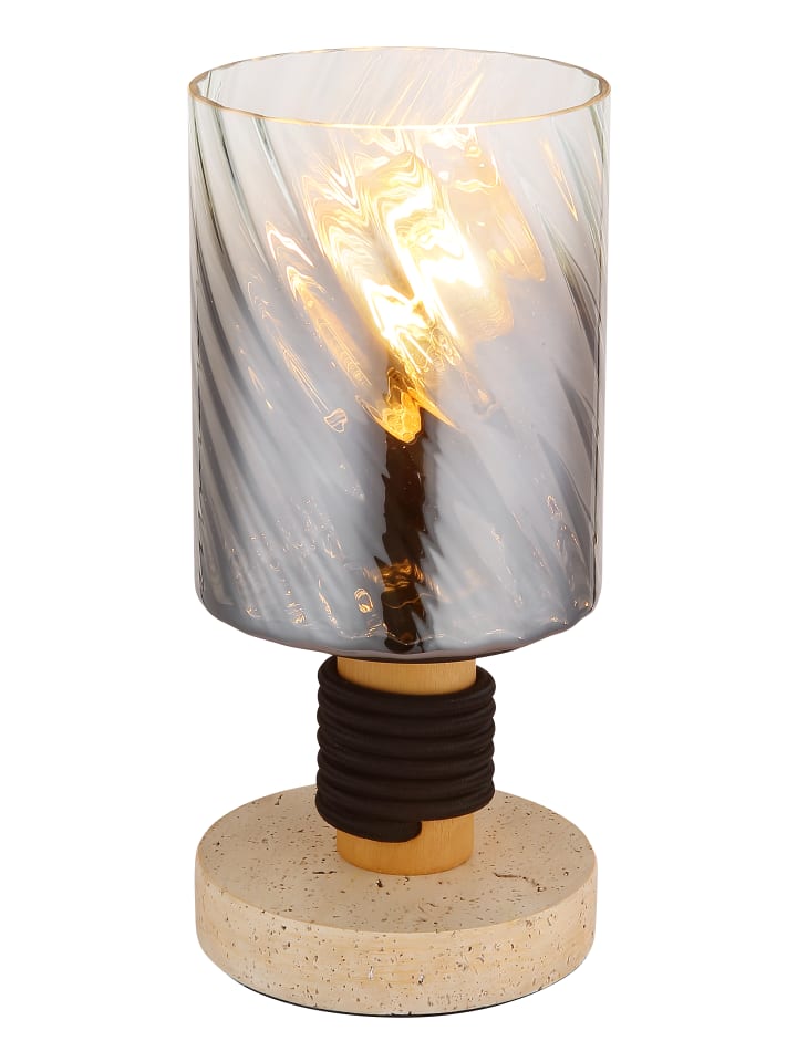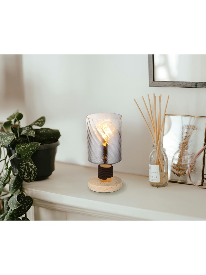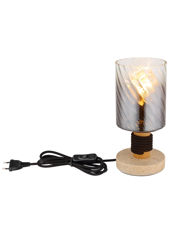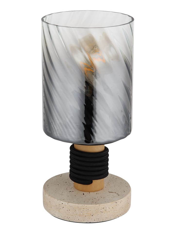 Настольная лампа с имитацией бетона и травертина, коричневое дерево, дымчатое стекло с четким градиентом, черный текстильный кабель, клавишный выключатель на кабеле, ø: 120 мм, H: 254 мм, длина кабеля 1500 мм, без 1 цоколя E27 40 Вт 230 В