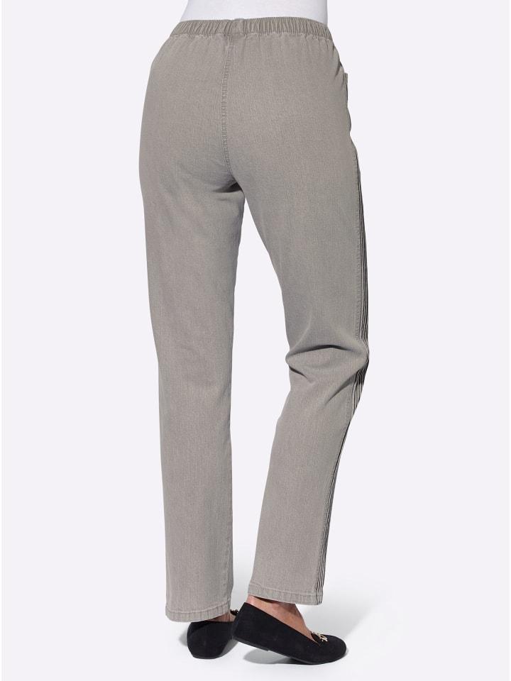 Удобные, простые в уходе и приятные в носке: джинсы с эластичным поясом по всему периметру и практичными карманами. Второй боковой шов и боковые складки визуально удлиняют ноги. Эластичная ткань обеспечивает отличную посадку и повторяет движения. Ширина брючины около 40 см.