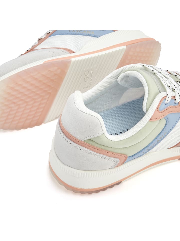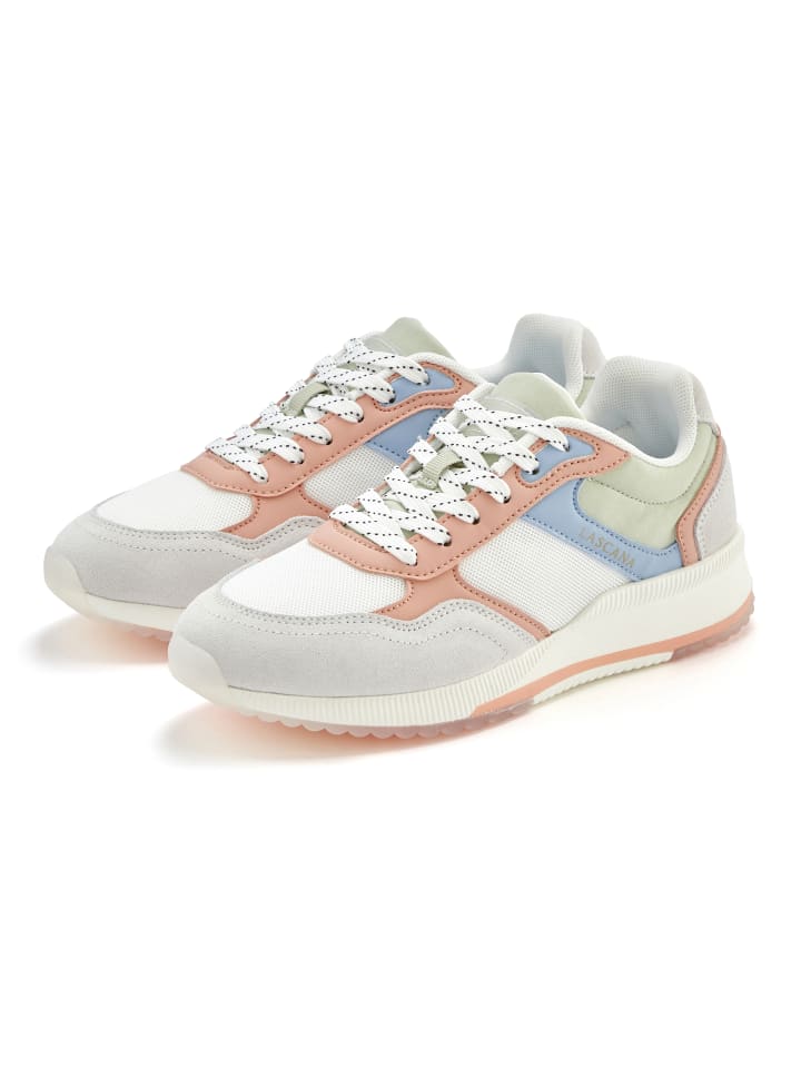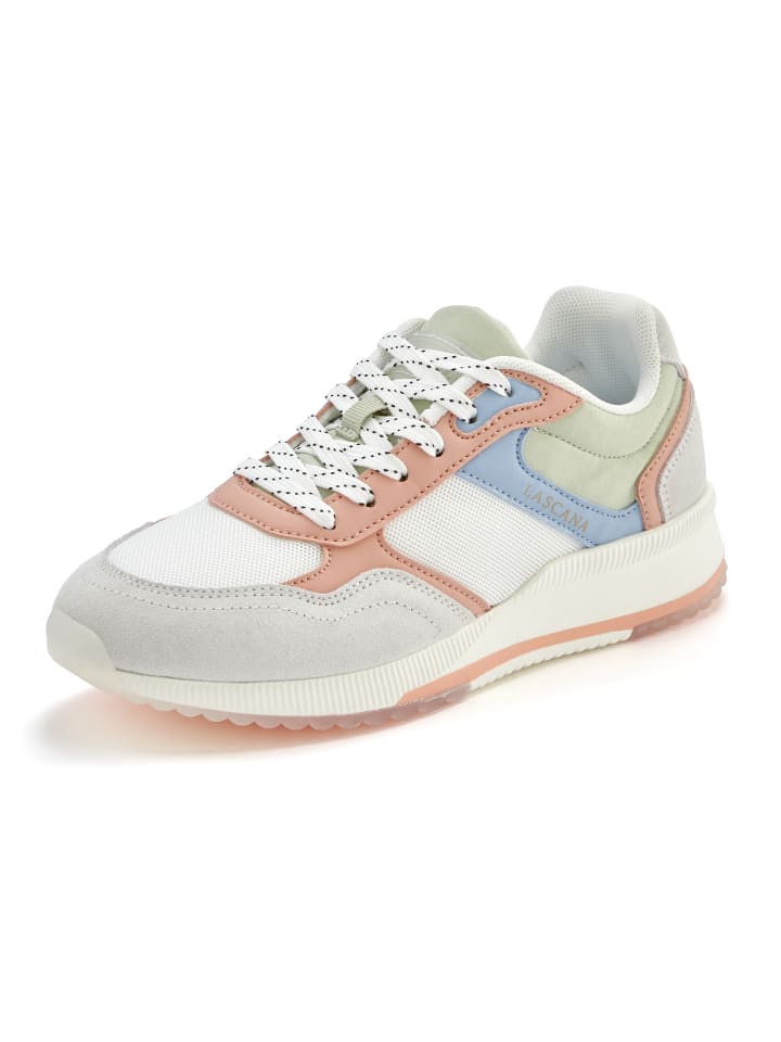 Кроссовки Lascana разноцветного дизайна. Со шнурками и мягким воротником. Верх из коровьей кожи, текстиля и искусственной кожи. Подкладка и стелька из текстиля. Подошва из синтетического материала.
