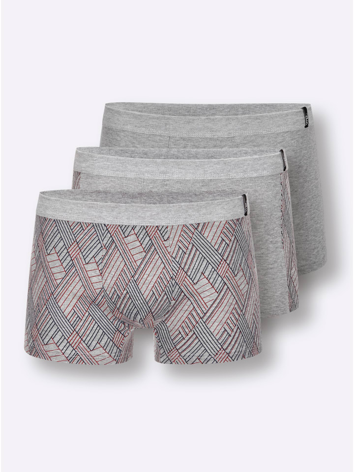 Эти брюки доступны в упаковке из трех шт. от Wäschepur: одни с принтом, одни с принтом сбоку и одни однотонные. Удобный мягкий пояс и логотип сбоку. Тонкая вязка в рубчик. Поддерживает инициативу «Хлопок, сделанный в Африке».