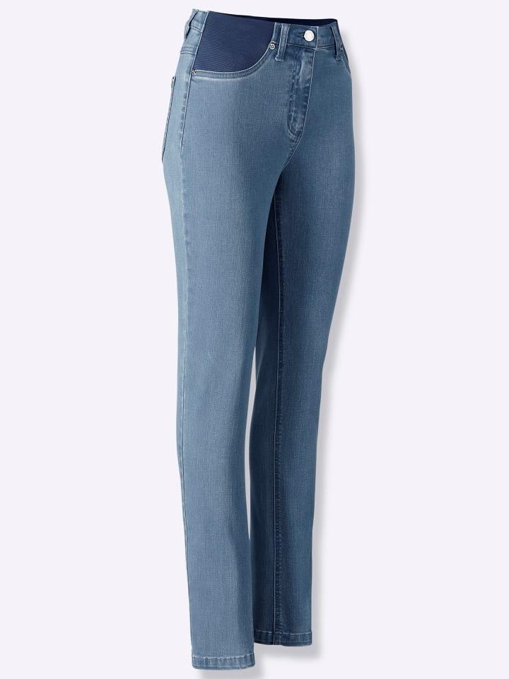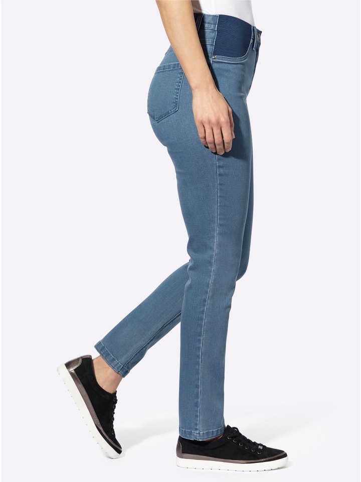 Наши идеальные джинсы! Эластичный пояс и эластичная ткань обеспечивают свободу движений и максимальный комфорт. Застежка на пуговицу и молнию, шлевки для ремня, два ложных кармана спереди и два накладных кармана сзади. Ширина брючины: около 34 см. Ремень в комплект не входит. Соответствует инициативе «Хлопок, сделанный в Африке».