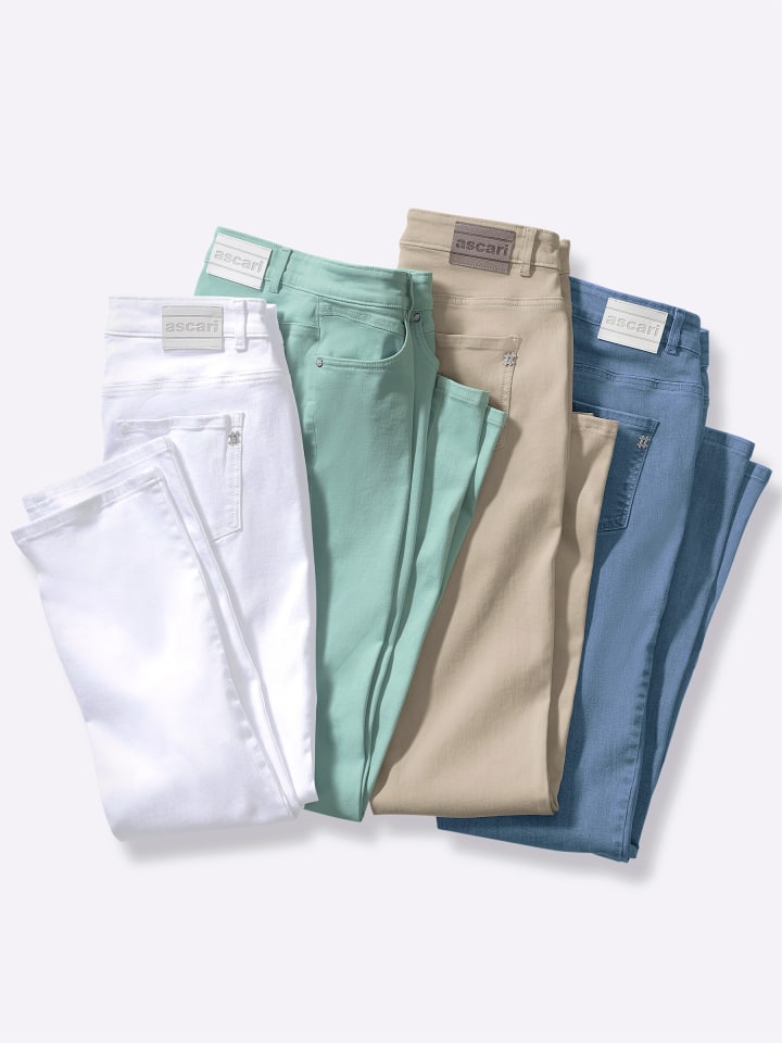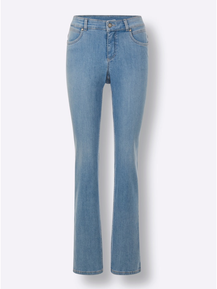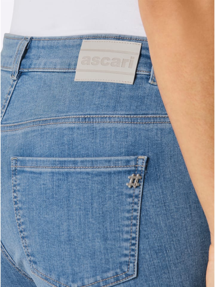Эти высокоэластичные джинсы премиум-класса из суперэластичного материала Ascari гарантируют максимальный комфорт в любом размере, создавая идеальный силуэт. Тщательное внимание к деталям включает декоративную строчку на карманах, тиснение логотипа на всех пуговицах и заклепках, а также нашивку из искусственной кожи сзади. Модель с пятью карманами. Прямой крой, ширина брючины около 38 см. Ремень в комплект не входит.