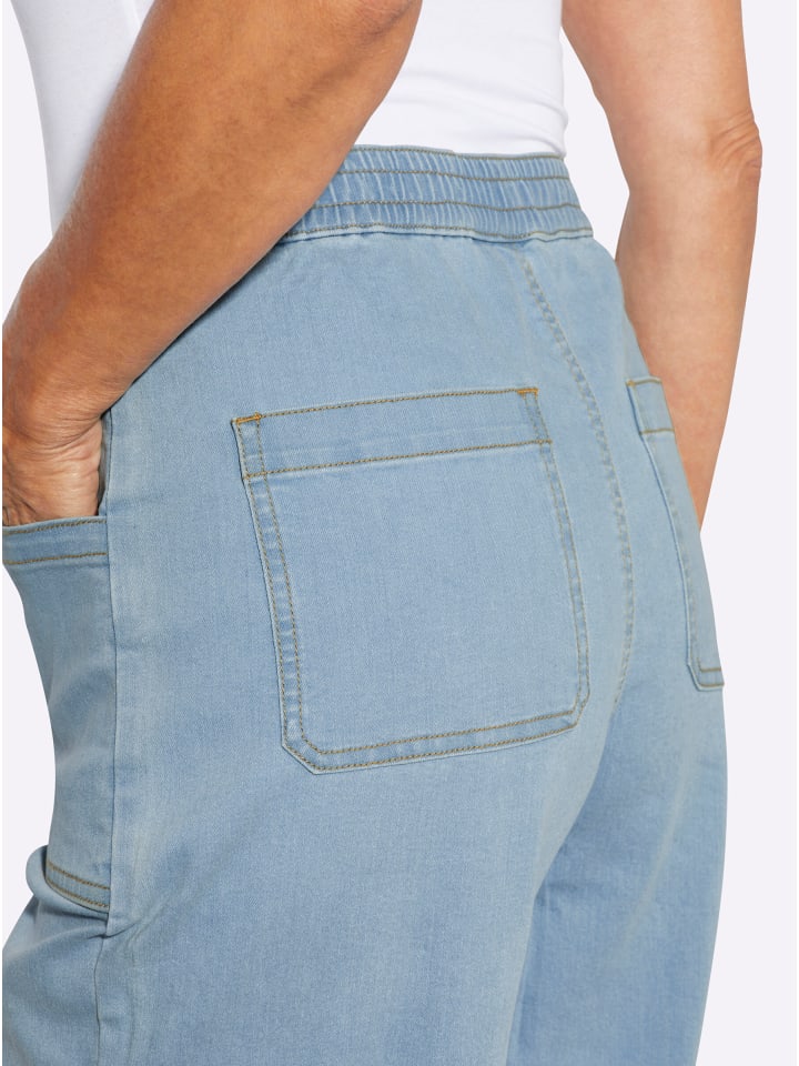 Супермодные! Удобные джинсы с модным широким кроем. Эластичный пояс, застежка на пуговицу и молнию. Два накладных кармана спереди и два сзади. Сдержанная стирка идеально дополняет стильный образ. Ширина брючины примерно 50 см.