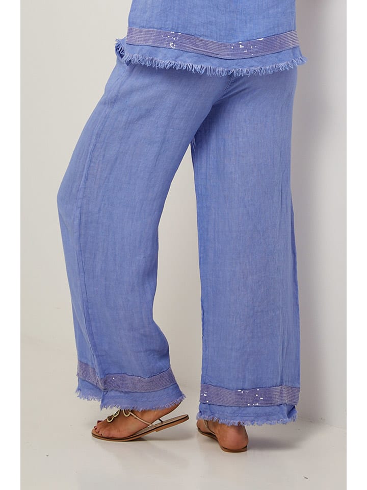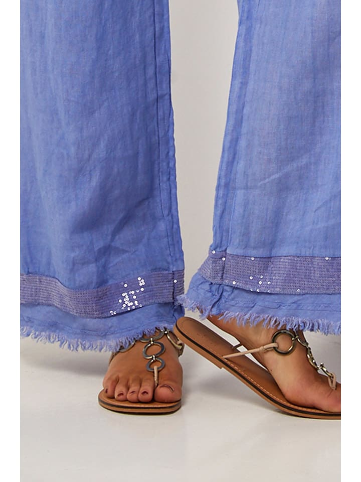 Льняные брюки синего цвета Le Monde du Lin