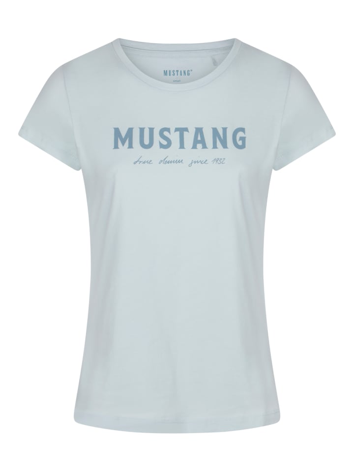 MUSTANG Женская футболка с круглым вырезом O-образным вырезом Базовая облегающая футболка с коротким рукавом с принтом логотипа Летняя рубашка 100% хлопок Белый Синий Зеленый Красный S M L XL XXL