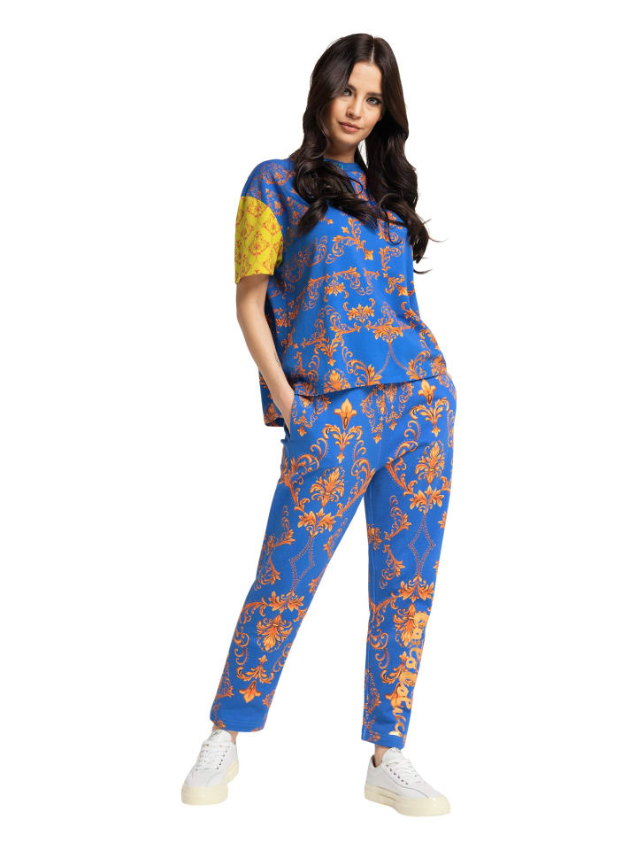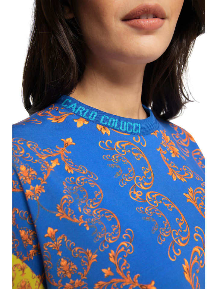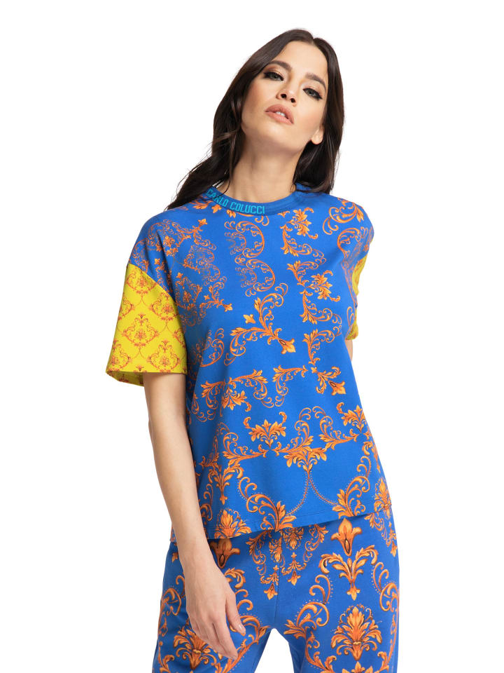 Эта футболка в винтажном стиле с круглым вырезом горловины отличается красочным принтом с мотивами в стиле барокко.
