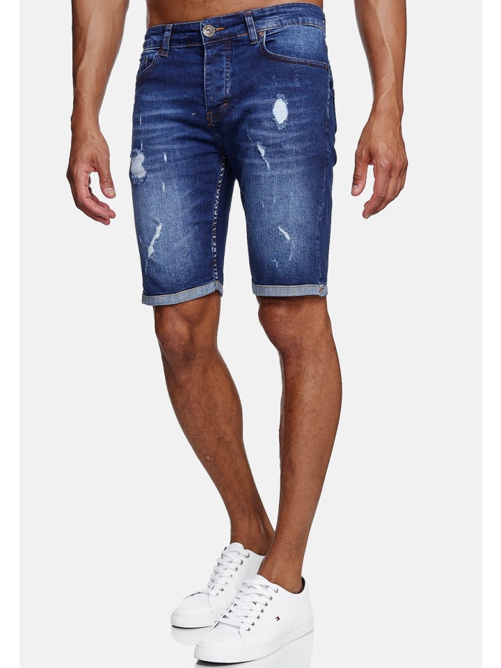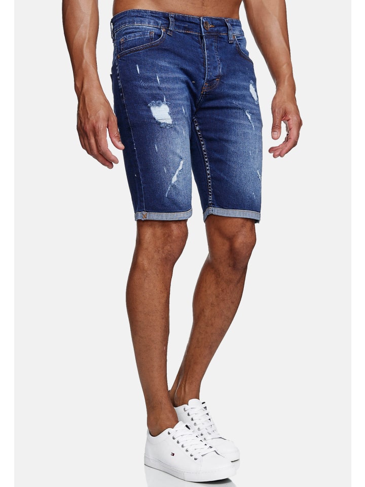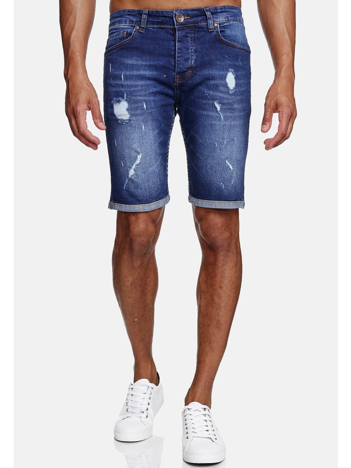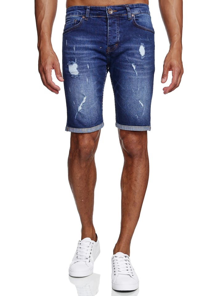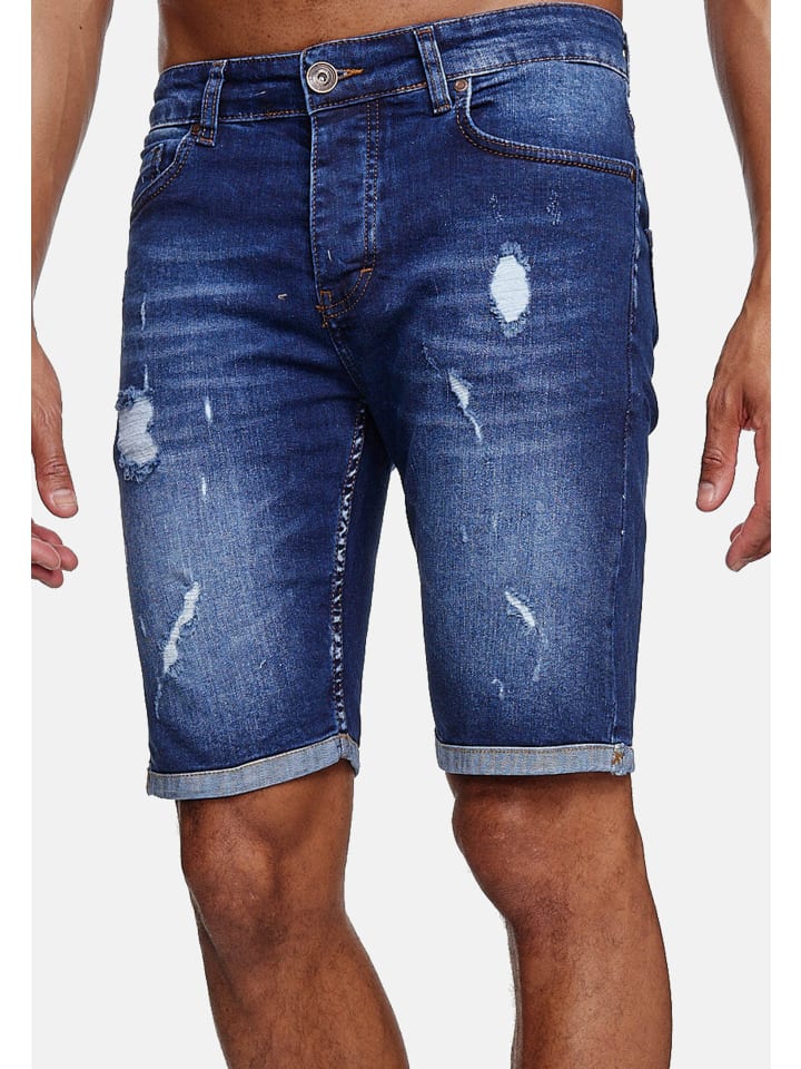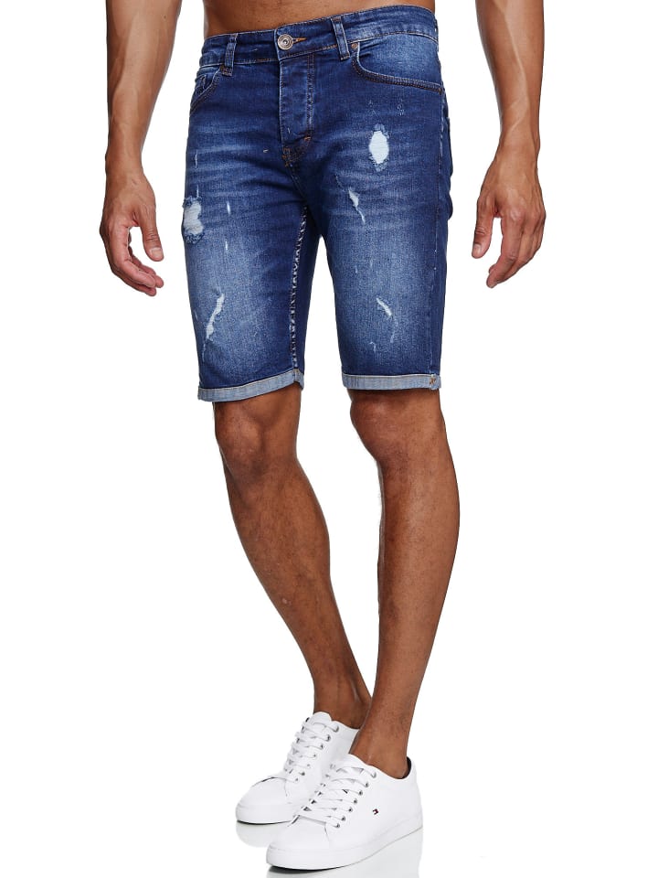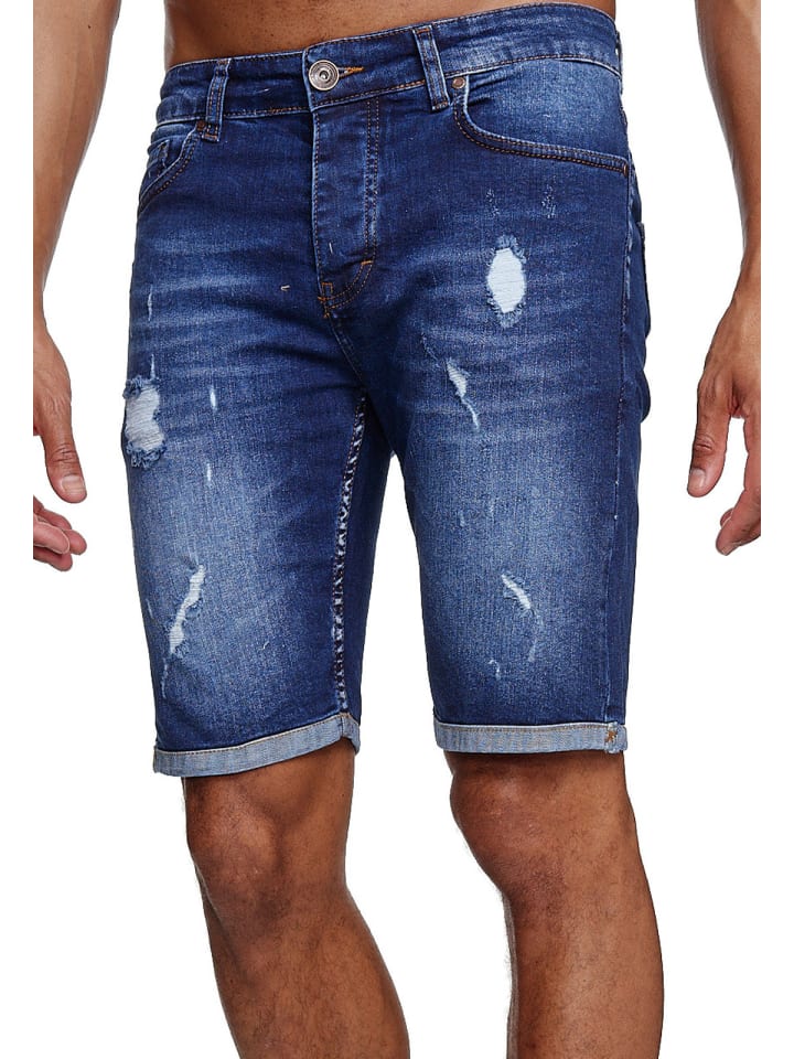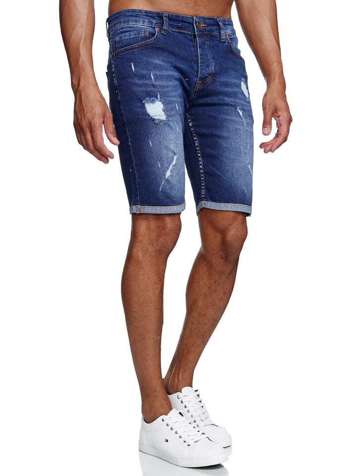Джинсовые шорты, рваные, стираные, синего цвета RESLAD