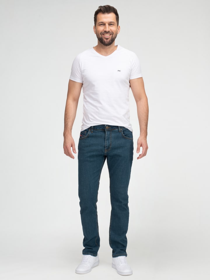 - Классические мужские джинсы с 5 карманами и спортивным кроем.