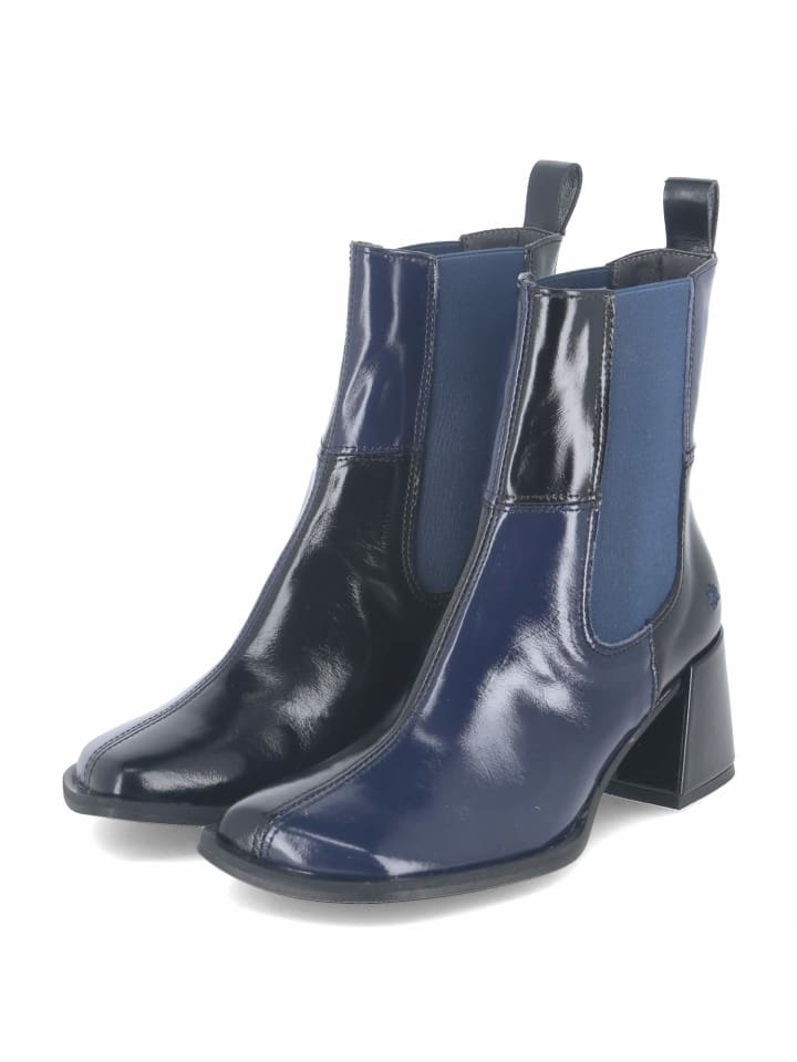 Ботинки VERONA воплощают современную элегантность с нотками ретро: лакированная кожа синего цвета в сочетании с разноцветной сине-черной клеткой создает глубину и текстуру. Квадратный носок и массивный каблук высотой 6,5 см формируют эффектный, но при этом удобный силуэт. Открытый крой с эластичными вставками по бокам и язычком позволяет легко надевать их. Гибкая, цепкая подошва обеспечивает надежное сцепление, а мягкая съемная стелька гарантирует комфорт в течение всего дня. Размерная сетка идеально подходит для любых мероприятий: от деловых встреч до выставок. Модный совет: укороченные расклешенные брюки, изящная блузка и темно-синее пальто создают чистые пропорции, а изящные серебряные аксессуары элегантно дополняют блеск лакированной кожи.