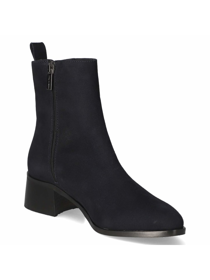 Эти ботильоны Kaerlek впечатляют своими четкими линиями и мелкозернистой замшей. Прочная натуральная кожа и кожаная стелька подчеркивают их качество, а мягкая стелька обеспечивает комфорт при ходьбе. Боковая молния и язычок позволяют легко надевать их, а гибкая нескользящая подошва обеспечивает надежную поддержку в течение всего дня. Блочный каблук высотой 3,5 см и закругленный носок создают женственный и практичный силуэт. Темно-синий оттенок может переливаться от черного до темно-синего, расширяя возможности для создания стильных образов. Идут размер в размер. Модный совет: Тонкое трикотажное платье темно-синего цвета, плотные колготки и графитовая сумка через плечо создают современный образ с этими ботильонами.