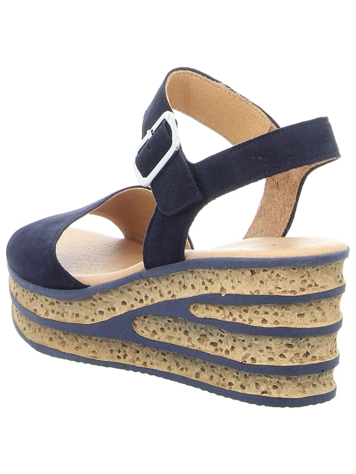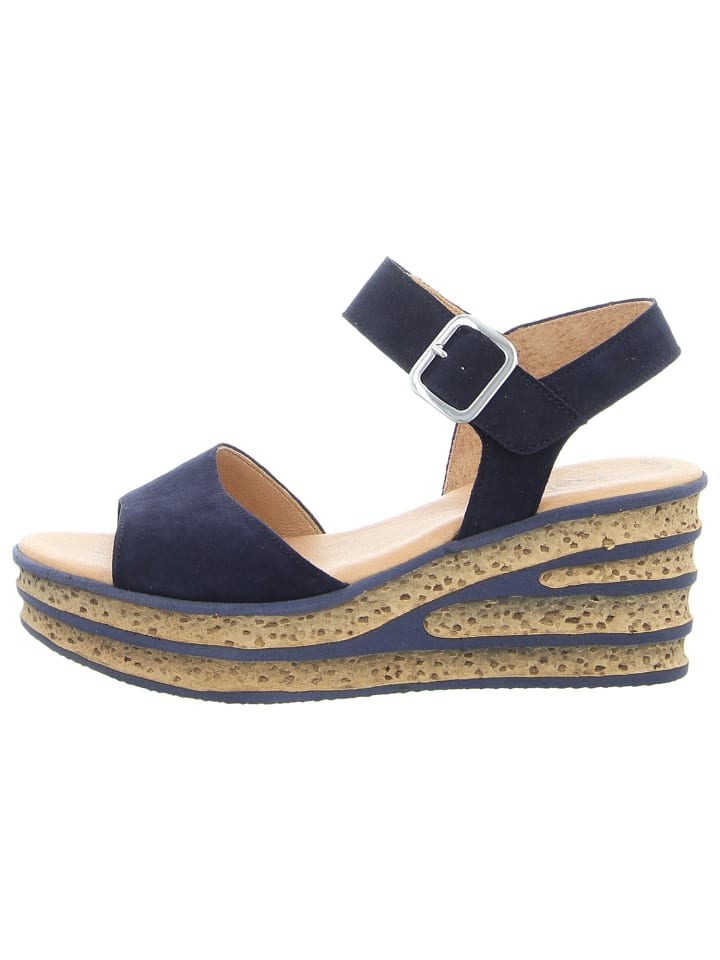 Босоножки на танкетке синего цвета Gabor