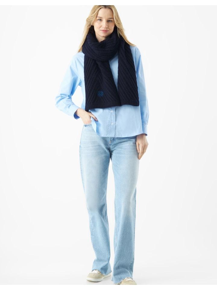 Этот вязаный шарф впечатляет своей элегантной текстурой и мягкой пряжей. Теплый материал обеспечивает комфорт в прохладные дни, а изящная нашивка с логотипом добавляет стильный штрих к простому дизайну. Элегантный спутник на каждый день.