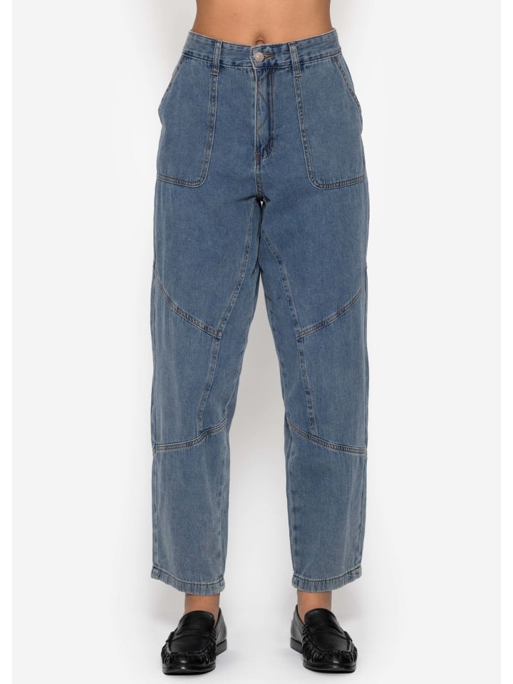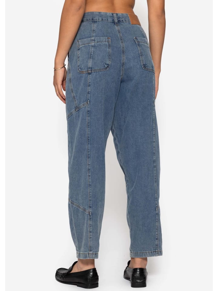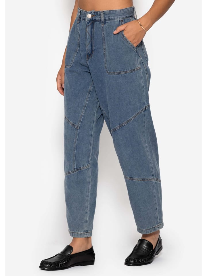 Эти джинсы-бочки с высокой талией отличаются прогрессивным дизайном с четкими линиями и эффектными швами. Высокая талия подчеркивает линию талии, а свободный крой и слегка зауженные книзу брючины создают современный, объемный силуэт. Большие передние карманы и структурированные швы придают джинсовому стилю нотку ручной работы и подчеркивают модный стиль джинсов. Видимая застежка на молнию и пуговицу, а также прочная джинсовая отделка придают им прочный и стильный вид. Будь то с коротким трикотажным топом, элегантной блузкой или свободной рубашкой - эти джинсы предлагают бесчисленные возможности для создания стильных образов и сочетают в себе комфорт с городским стилем.