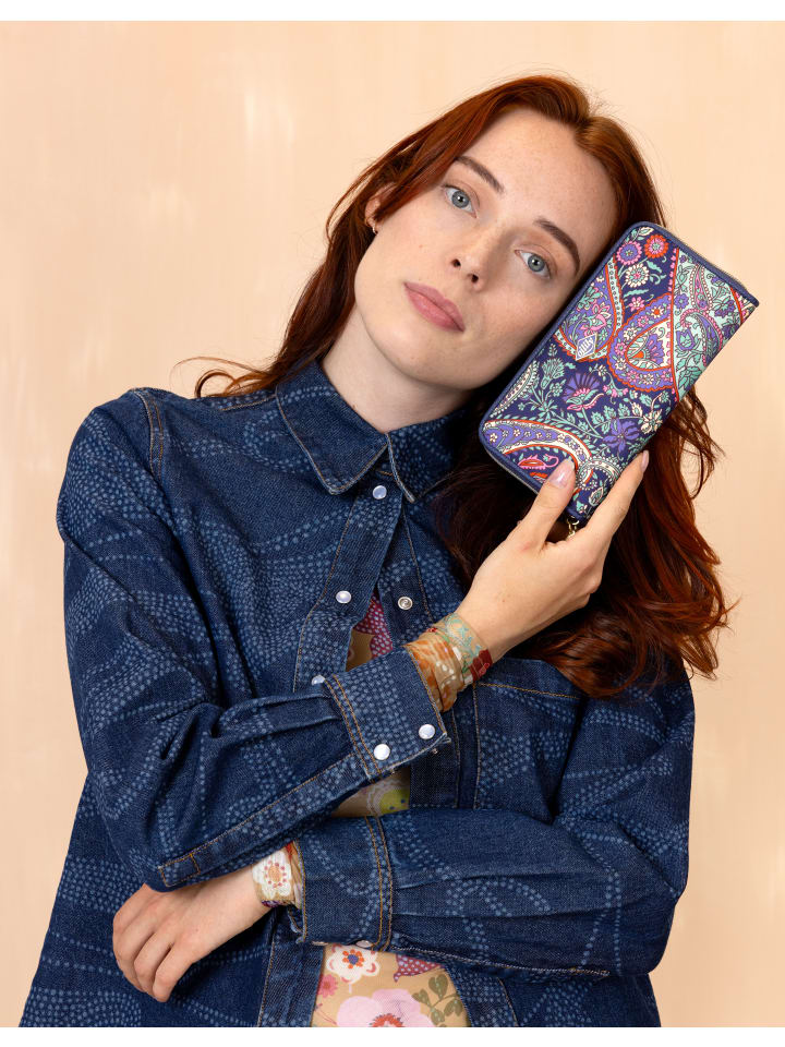 Большой, прочный кошелек на молнии с принтом «Paisley 4 Ever». Круглая молния обеспечивает доступ к 5 отделениям, 1 карману на молнии и 8 слотам для кредитных карт. Переработанный полиэстер с водоотталкивающим покрытием. Детали из искусственной кожи. Размеры: (Ш x Г x В) 19,5 x 2,5 x 10,5 см. Сделано в Китае.