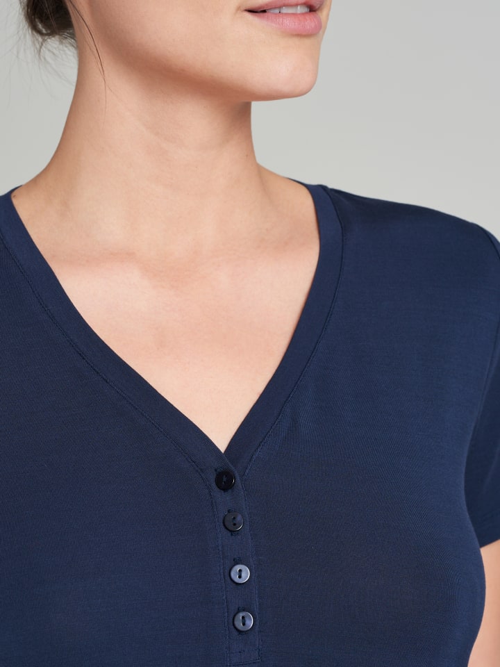 Такая мягкая, такая чистая: эта футболка-хенли - ваш новый любимый базовый предмет гардероба! Эта женская футболка из популярной серии Mix+Relax станет вашим незаменимым спутником. Тонкий трикотаж невероятно легкий и приятный к телу. Благодаря V-образному вырезу и функциональной планке с пуговицами, футболка выглядит очень повседневно. Дополните ее подходящими брюками, и вы получите идеальный расслабленный и комфортный образ - разумеется, высочайшего качества SCHIESSER!