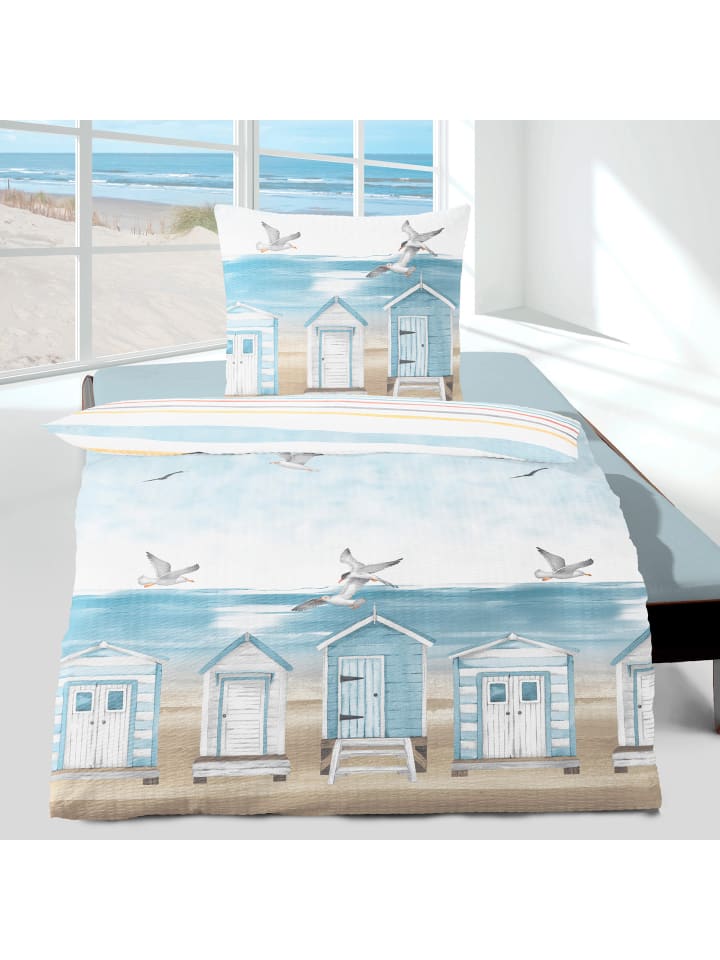 Постельное белье Bierbaum Seersucker. Привнесите ощущение побережья в свой дом. Чайки кружат над пляжными домиками, сокращая время до следующего отпуска. С этой легкой, воздушной и нежной тканью ваши сны станут реальностью. Прочный жатый эффект обеспечивает оптимальную циркуляцию воздуха; ткань терморегулирует, дышащая и нежная на ощупь. Вы быстро оцените простоту ухода за этим качеством, так как оно не мнется и легко надевается благодаря молнии.