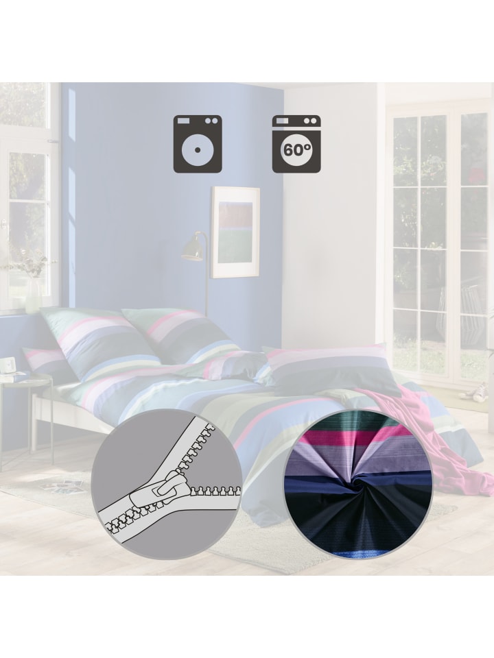 Постельное белье REDBEST Renforcé. Горизонтальные полосы разной ширины, некоторые с внутренним рисунком, в гармоничном сочетании цветов придадут вашей комнате современный вид. Гладкая, приятная на ощупь ткань обеспечит превосходный комфорт во время сна. Она невероятно мягкая, эластичная, прочная и дышащая. Легко надевать благодаря молнии.