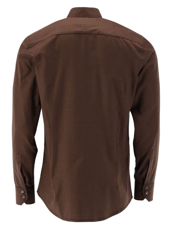 Искусное сочетание однотонной ткани четырех темных тонов и соответствующего узора пейсли на внутренней стороне воротника и планке с пуговицами придает этим рубашкам поистине элегантный вид. Пуговицы с эффектом оленьего рога дополняют гармоничный общий вид. Рубашки представлены в облегающем крое с воротником на пуговицах, подчеркивающим фигуру, в размерах от 35 до 53. Помимо привлекательного внешнего вида, преимуществом является простота ухода: хлопковая ткань практически не мнется - ни при носке, ни после стирки. От OS Trachten.